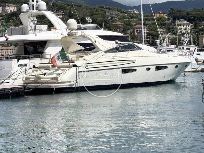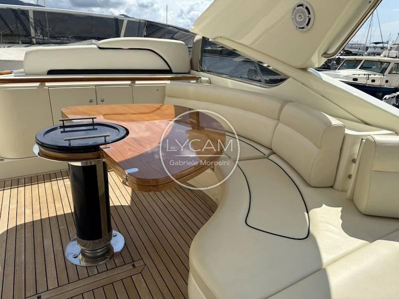 The Riva 59 Mercurius represents one of the most elegant open motoryachts produced on the market in the early 2000s. The profile appears very sober and is distinguished by the rollbar that integrates harmoniously into the windshield. Another distinctive element is the elaborate design of the bulwarks with the characteristic teardrop light intakes that flood the refined rooms below deck with brightness. This is the first model produced under the management of the Ferretti group and considerable attention has been given by the Officina Italiana Design studio in designing soft shapes synonymous with elegance.