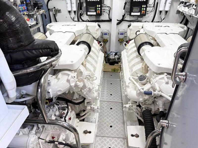 Autopilot; Sonar; Raymarine anemometer; Raymarine GPS/Plotter; Electronic engine throttles; Flaps; VHF; Compass; Seakeeper stabilizers mod. 16 (290 hours); Radar; Radio Hi-fi