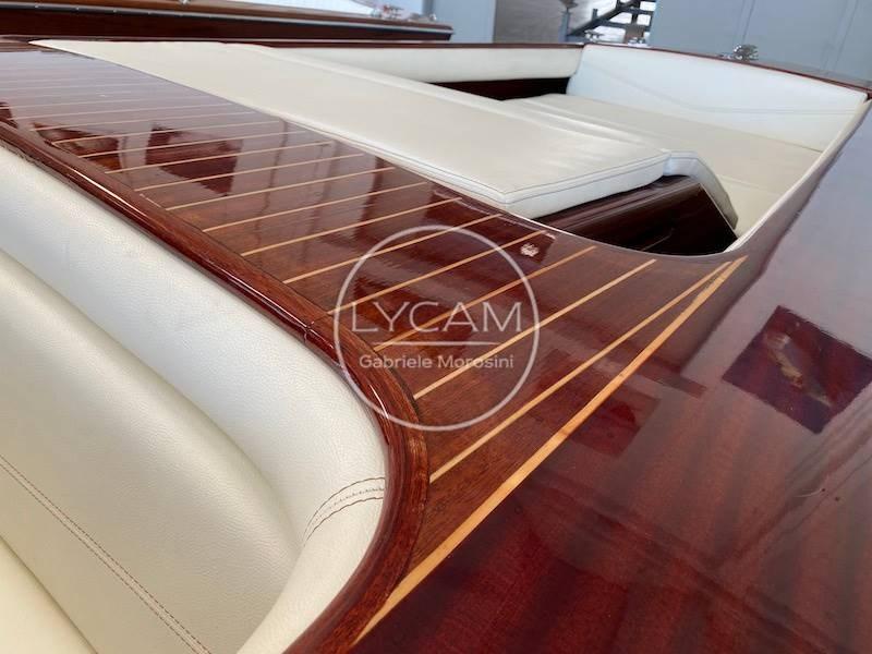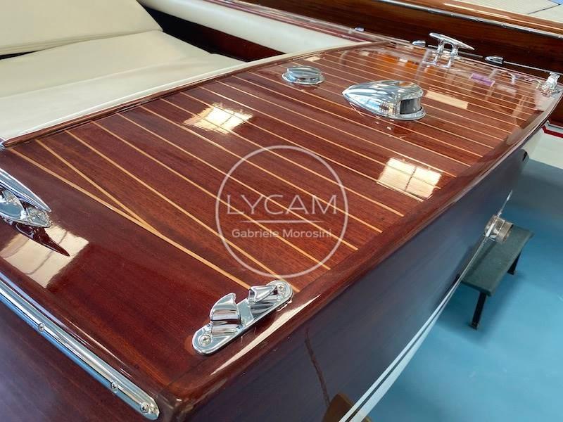 This Abbate Villa d'Este was built in 1960 and is one of the most famous examples of runabouts made by the shipyard of the same name on Lake Como. The high construction quality in double layer of mahogany has nothing to envy to emblazoned shipyards such as Riva or Baglietto who at the time were already experimenting with the first constructions in sheets of marine plywood. The model in question was restored in 2015 by a well-known shipyard specializing in woodworking. To enrich this hull with charm, in addition to the purity of the timeless lines, the original deck hardware totally re-chromed. In 2023, another 6 new coats of clear coat were applied. The boat is equipped with a new Mercruiser V6 250hp engine. Further information and list of works carried out on request.