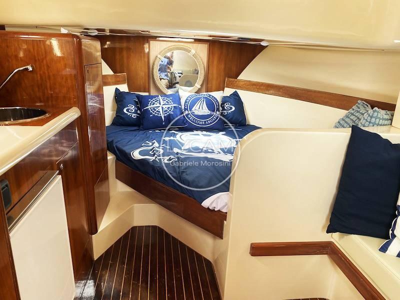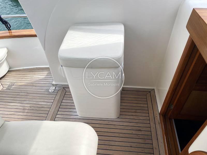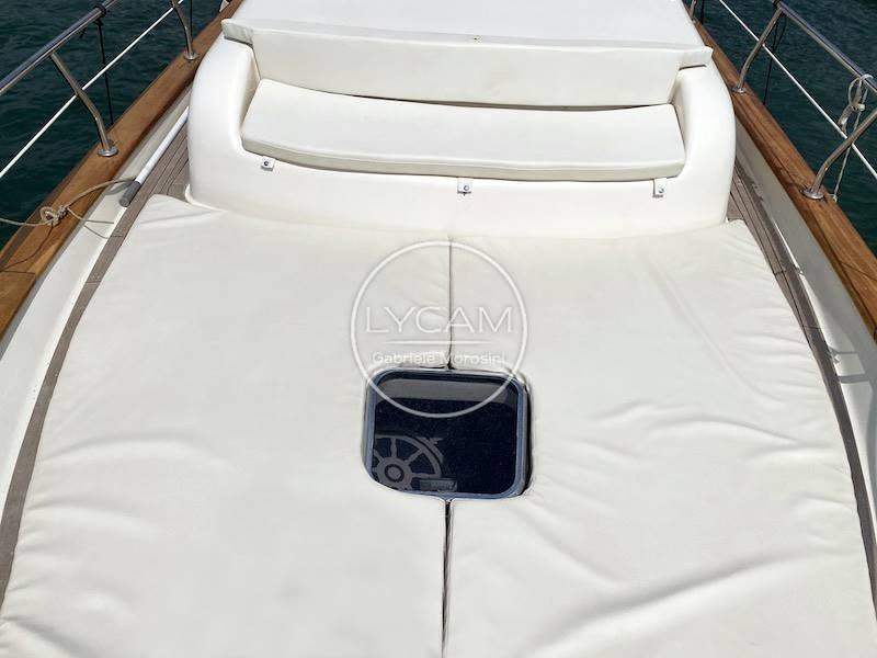 Through the comfortable wooden platform you can access the cockpit characterized by 2 seats placed along the aft mirror. Proceeding towards the bow is the helm station on the starboard side and the co-pilot seat on the port side.
