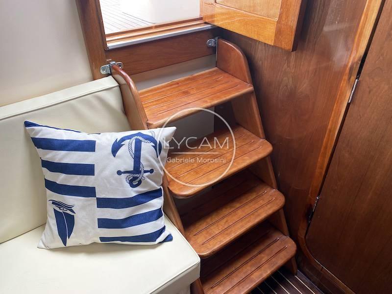 Navigation lights; Anchor light; Mooring bollards; Autoclave; Teak cockpit; Teak swim platform; Swim ladder; Cockpit shower; Electric bilge pumps; Trumpet; Wipers; Electric windlass winch; Adjustable headlight; Charger; 2 Batteries, motors and services; 220V socket; Inverter; Boiler; New complete cushions; Fridge; Cabinet bar sink; Cockpit awnings; Still steel roller; Still; Steel handrails; Boat Hook