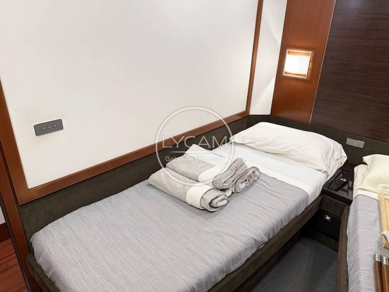 The area below deck is intended as a sleeping area and consists of 3 cabins (owner's cabin amidships, double with flat beds on the starboard side and VIP cabins in the bow) with en-suite bathrooms and internal galley along the port side. A cabin (2 beds) has been reserved for the crew to the side of the galley.