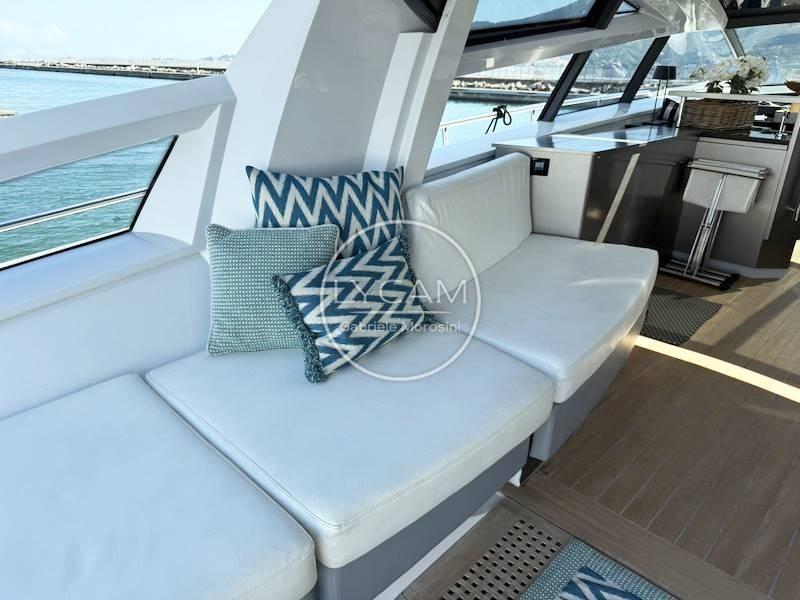 A further identifying aspect is the absence of encumbrance and interruptions of the cockpit, which can become a single environment to be lived in the open air or, by closing the aft panoramic window, you can take advantage of the comfort of a protected and air-conditioned environment.