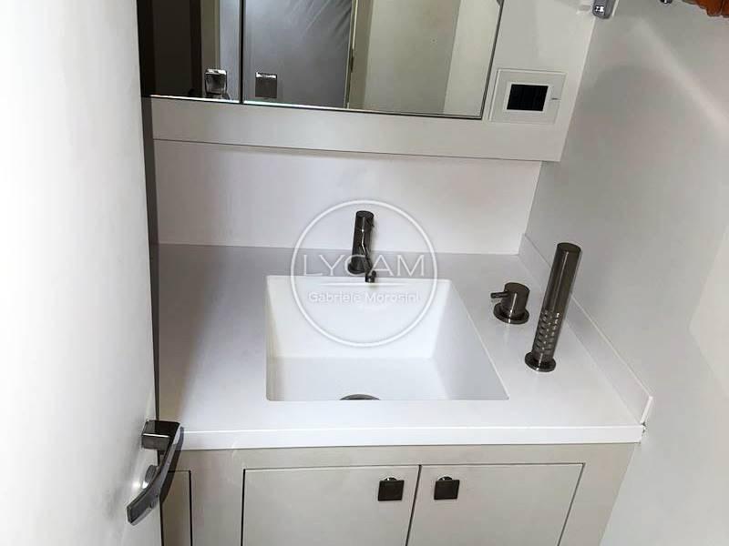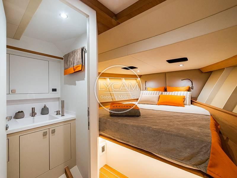 Below deck, on the port side, the toilet room has been created while, in the bow, a bed in an open space environment.