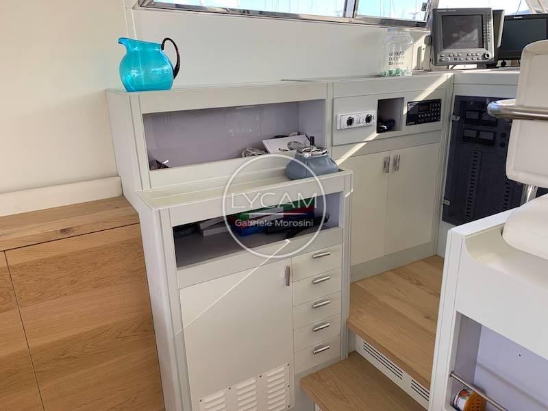 Bow thruster, Stern bridge redone in 2019, Teak deck, Generator, Hot/cold air conditioning, Watermaker, LED lighting, Electric windlass, Cockpit shower, Hydraulic gangway, Swimming ladder, Complete cushions, Automatic bilge pumps, Battery charger, Battery switch.
