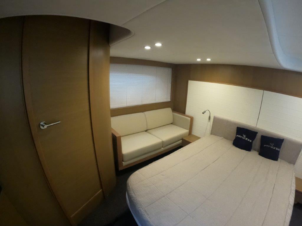 Introducing the stunning 2014 Princess V48 Deck Saloon, a remarkable motor yacht that combines elegance with performance. With an overall length of 15.49 meters, this vessel is crafted from durable fiberglass, ensuring both strength and beauty on the water. Powered by twin Volvo IPS 600 engines, each delivering an impressive 435 horsepower, it boasts a cruising speed of 28 knots and a maximum hull speed of 34 knots, making it perfect for exhilarating adventures. The yacht features two comfortable cabins and four heads, providing ample space for relaxation and privacy. Equipped with modern amenities, including joystick control for effortless maneuvering and an electric windlass for convenience, this yacht is designed for both ease and enjoyment. Experience the perfect blend of luxury and performance with the Princess V48 Deck Saloon, a true gem for any boating enthusiast.