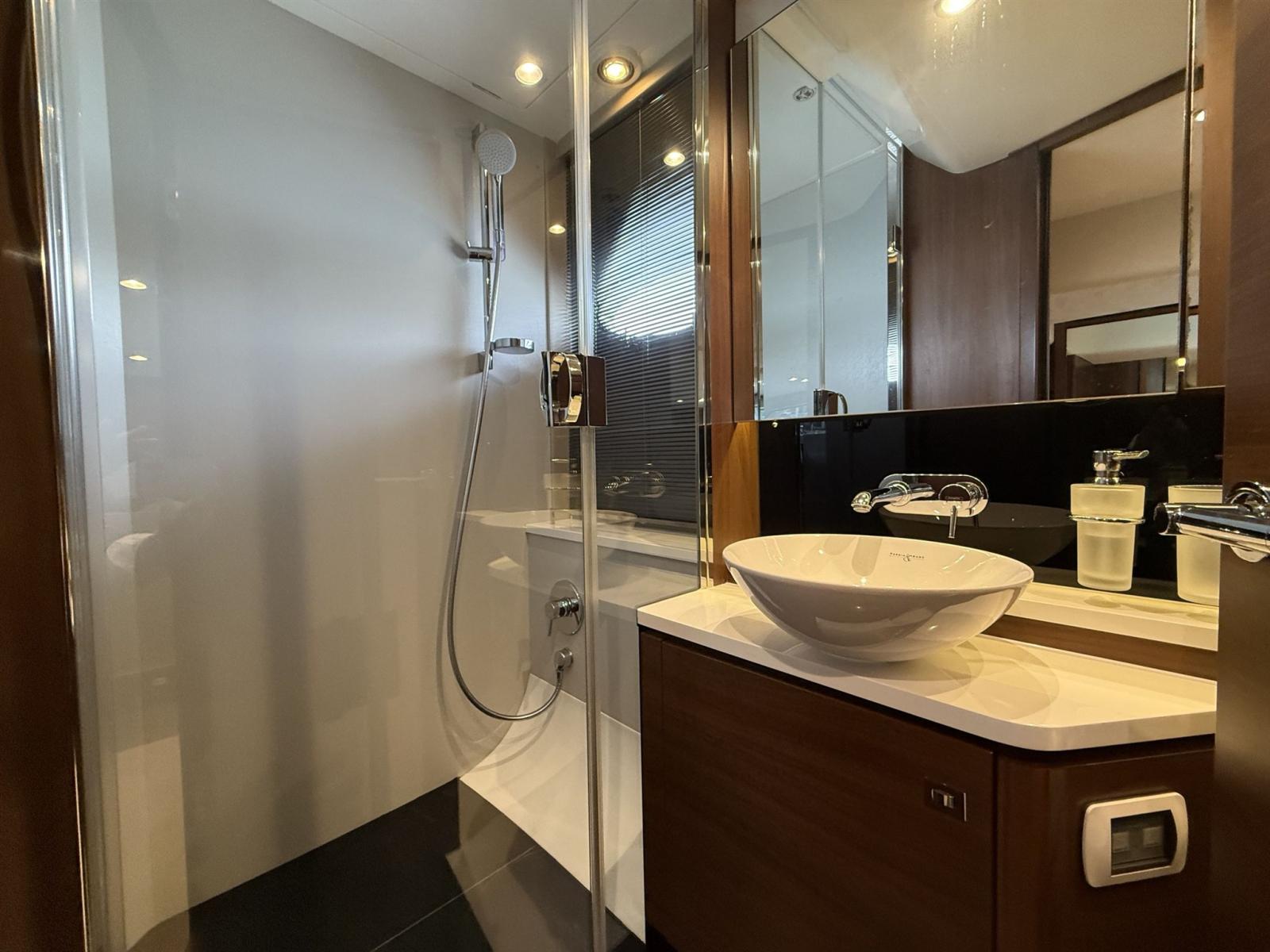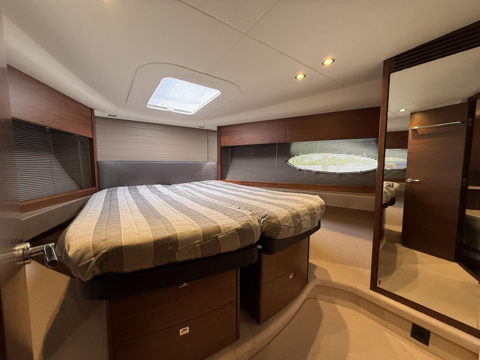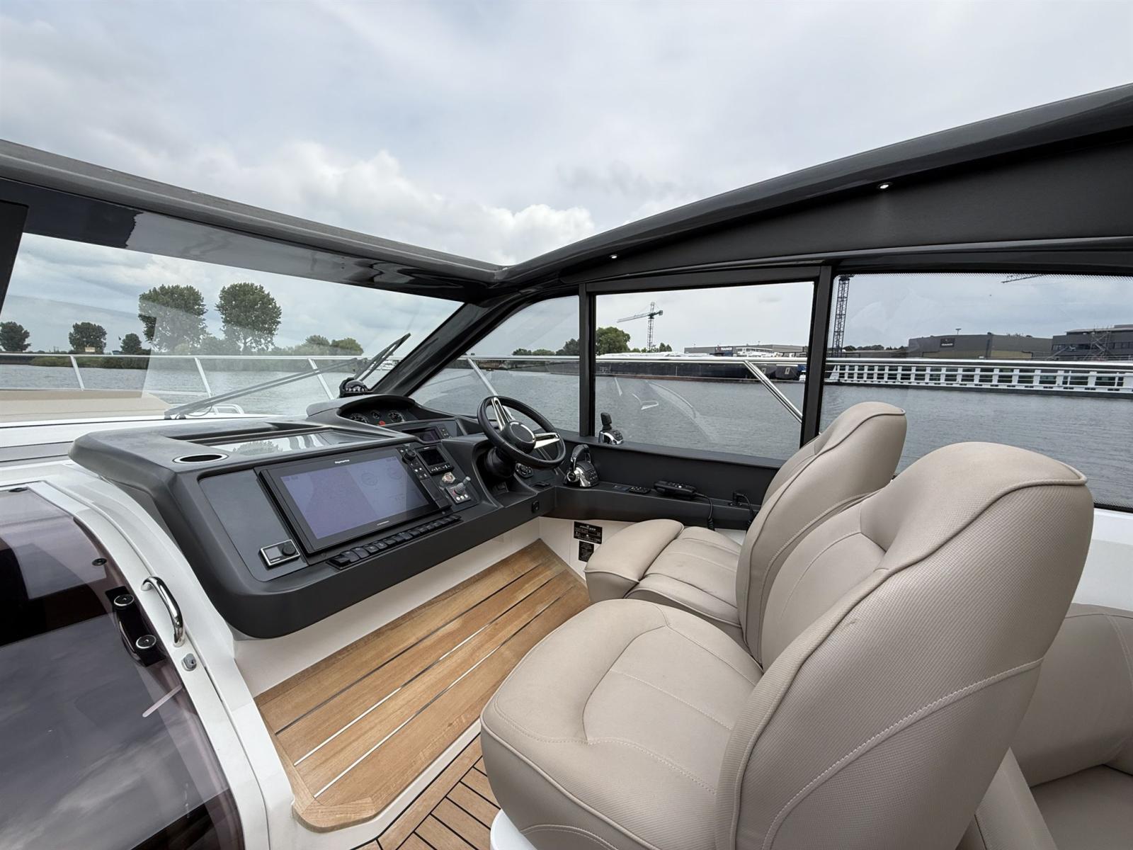 Now available this well-maintained Princess V48 Open from 2015. Thanks to the open design, you can enjoy a generous outdoor living space with a spacious cozy U-shaped sofa and a large sun bed from the front and back. At the steering position there are two full-fledged seats for the captain and co-driver. Docking is effortless thanks to the joystick and bow thruster. The ship is equipped with the DPS system from Volvo Penta, this system keeps the boat independently on its GPS position. Ideal if you have to wait for a bridge, lock or when you want to moor. With the Webasto heater in the cockpit, it remains comfortable on board this stylish Princess even on colder days. Below deck, the ship offers a surprising amount of space with a well-thought-out layout and high-quality finish. Two spacious cabins with en-suite bathrooms ensure ultimate comfort for both the owner and his guests. The owner's cabin covers the full width of the boat and offers plenty of natural light thanks to the spacious windows.