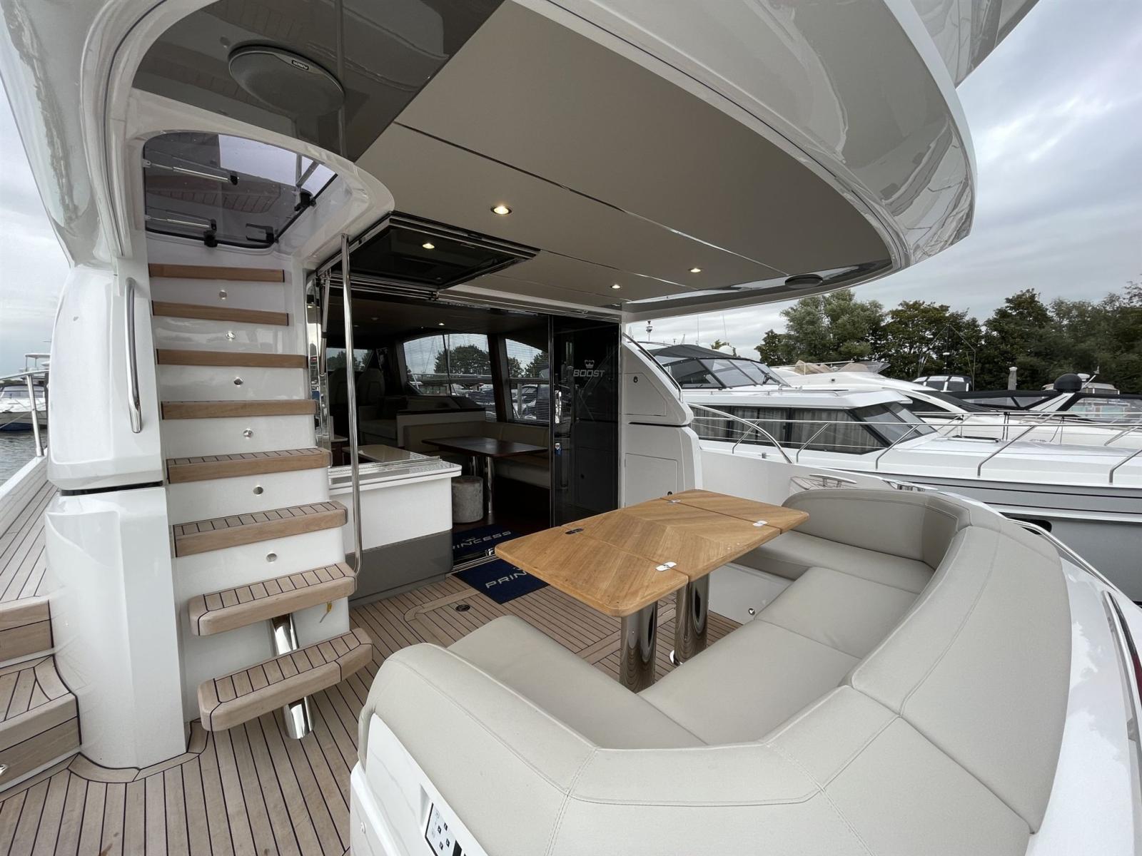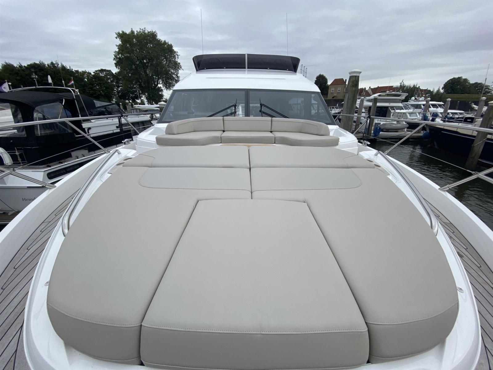 The Princess F62 is a full-fledged flybridge yacht that offers a remarkable amount of space for her length. With her thoughtfully designed flybridge, she has two seating areas where you can comfortably enjoy with guests, on top of which there is also a spacious sun bed.