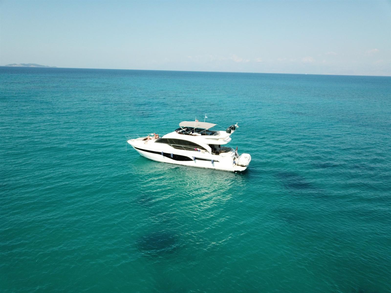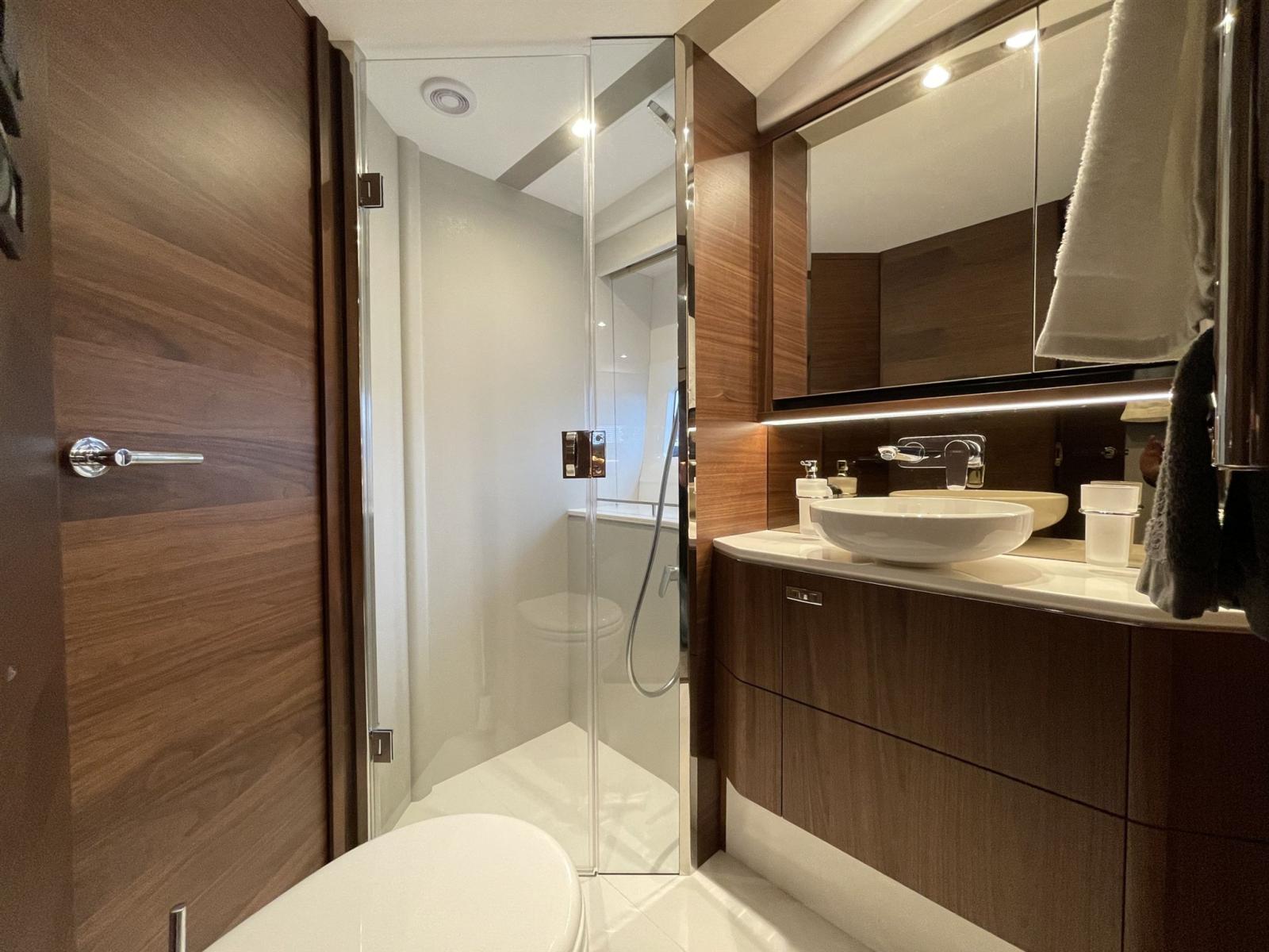 The spacious saloon on the main deck is connected to the outside world thanks to the beautiful high side windows. The cozy kitchen on the starboard side is located aft and flows seamlessly into the aft deck. The steering position has two full-fledged seats and a cozy seat on either side. Below deck, the F62 can accommodate six guests in three beautifully appointed en-suite cabins, which are bathed in natural light thanks to the elegant windows in the hull. This boat was originally delivered by us in 2021 and has various options such as; a gyro stabilizer, yacht control remote control, Flir camera etc. In short, a very fully equipped flybridge yacht ready for her new owner.