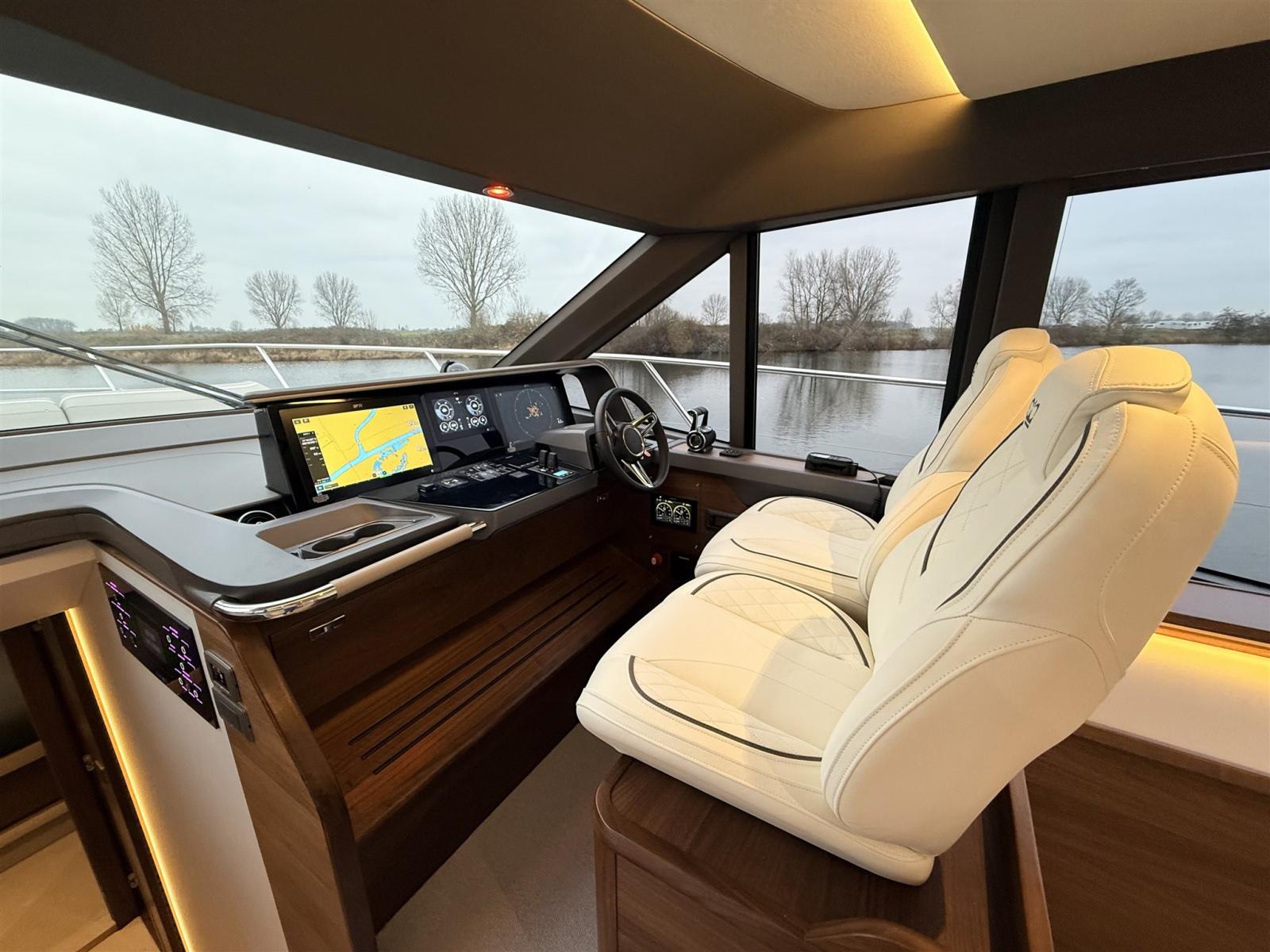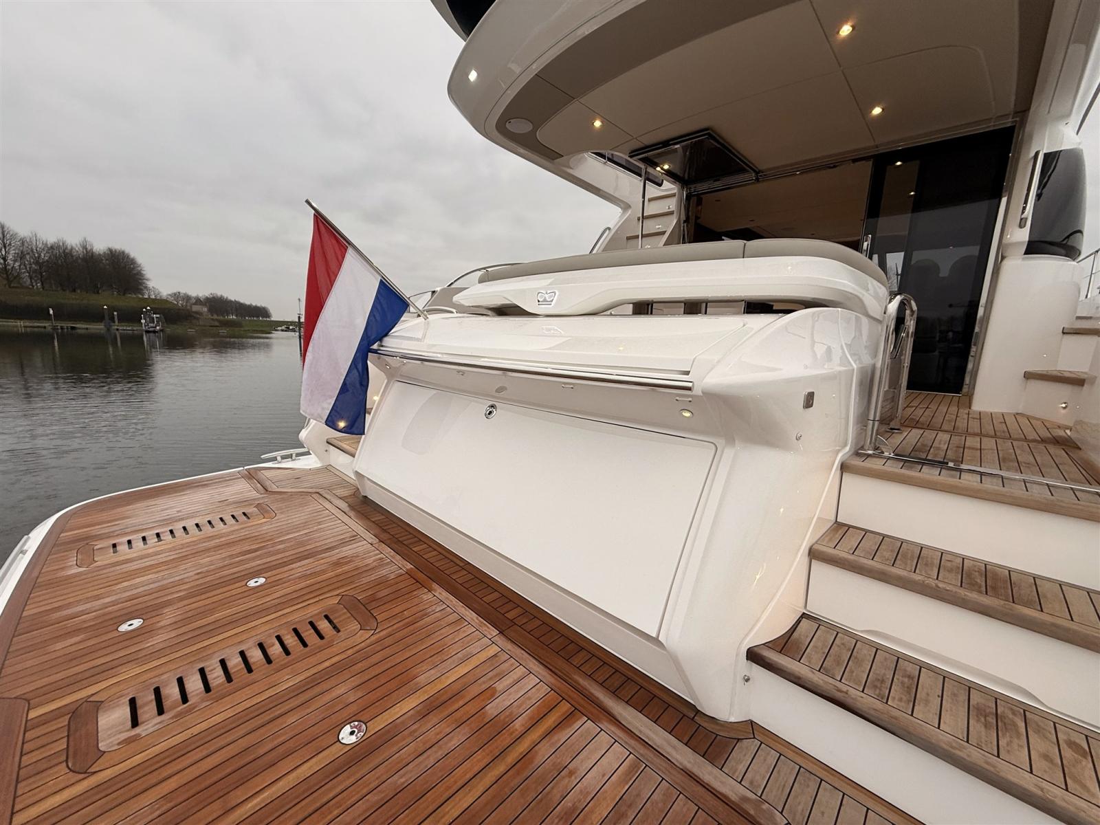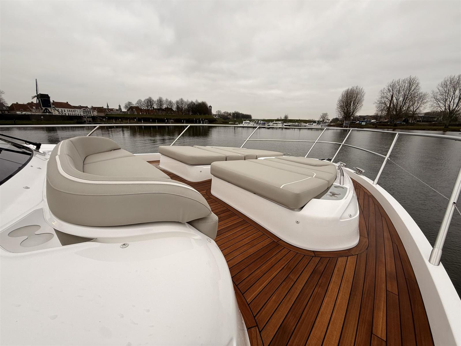 The yacht is fully equipped and includes a Seakeeper gyro stabilizer, a hydraulic gangway and swimming platform. In addition, it is equipped with a powerful 19 kW generator and an air conditioning system that can both cool and heat. Thanks to the E-Vision bow and stern thruster with hold function, you will experience extra comfort and control while manoeuvring.