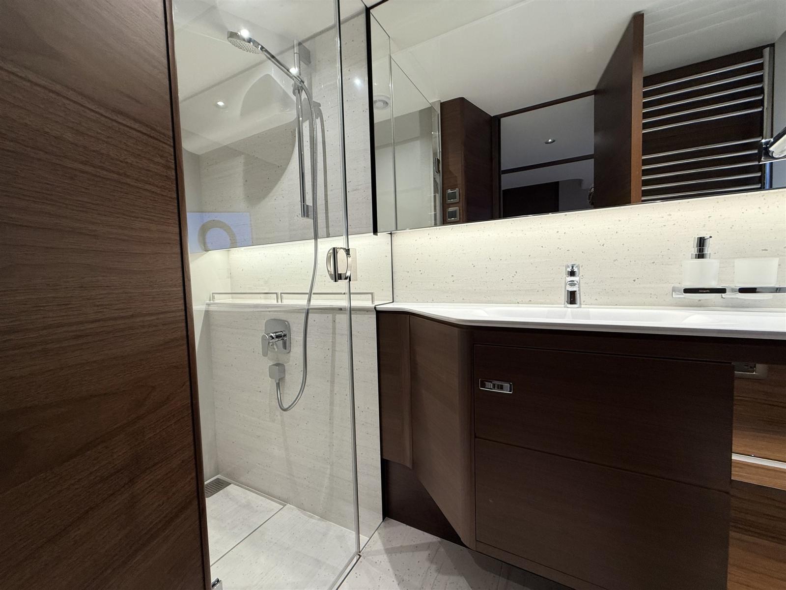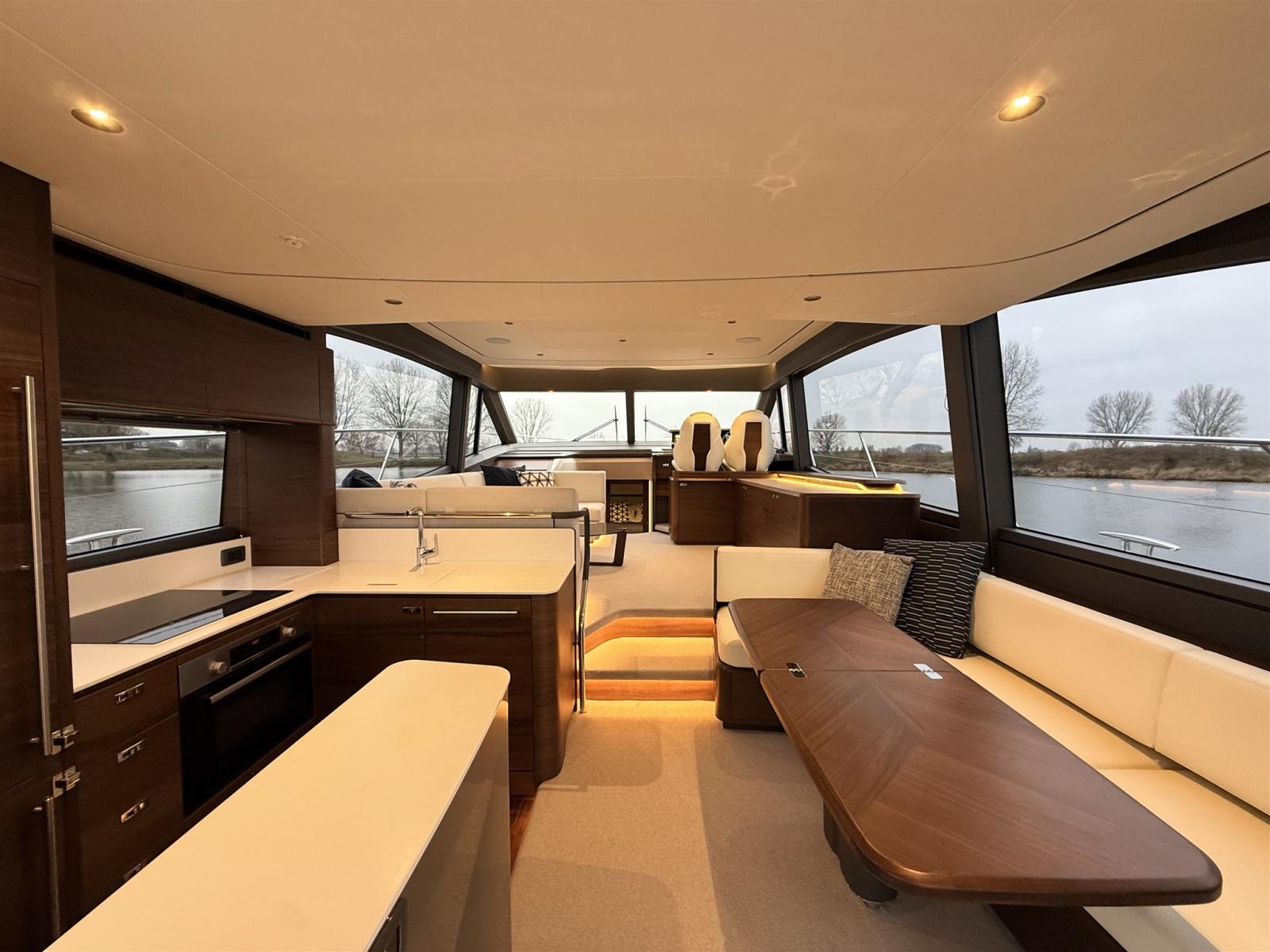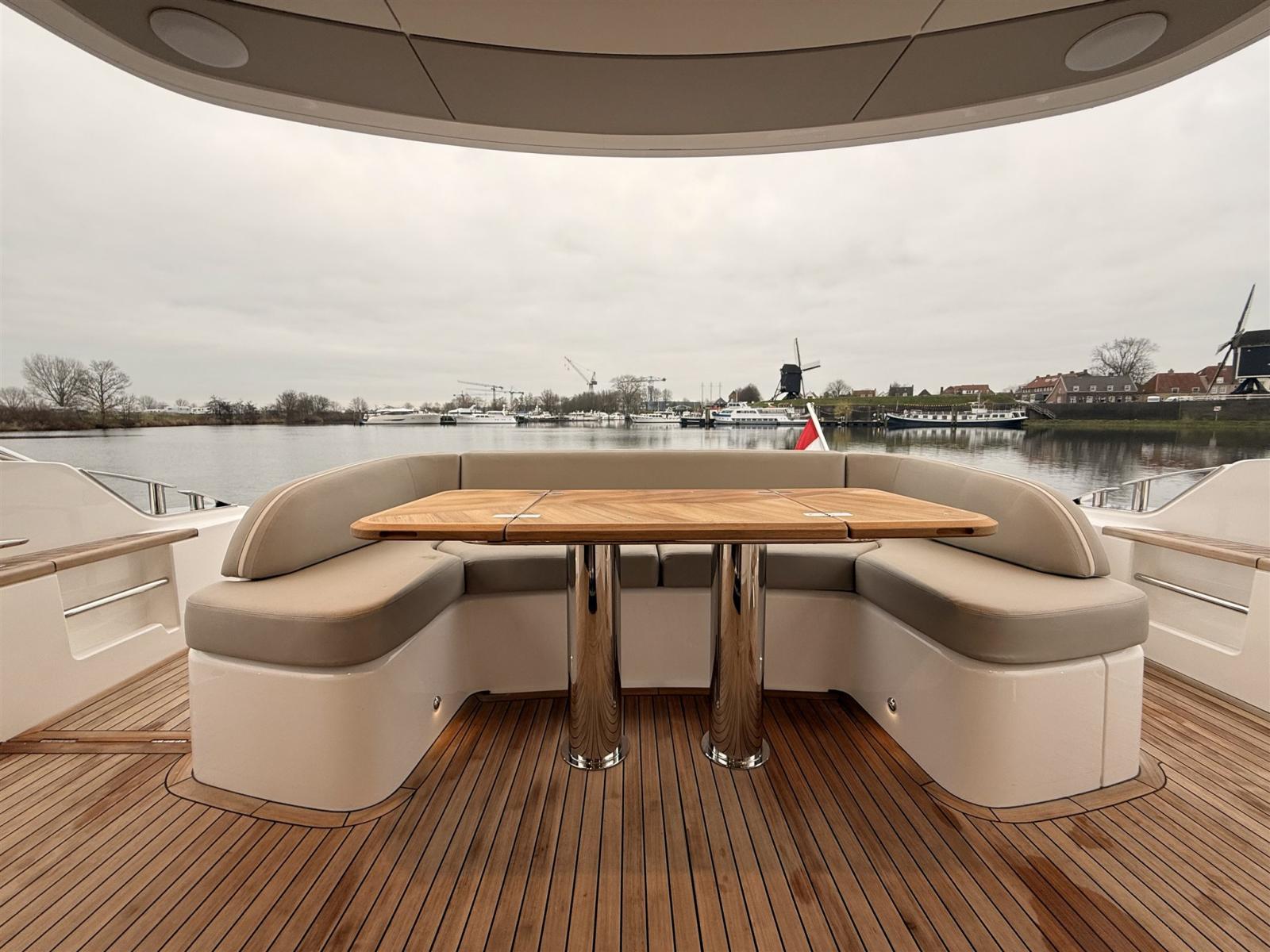 Furthermore, the F58 has a separate dinette opposite the kitchen with beautiful sea views. On the cleverly arranged flybridge you will find a spacious dining table with wetbar at the rear, saving space.