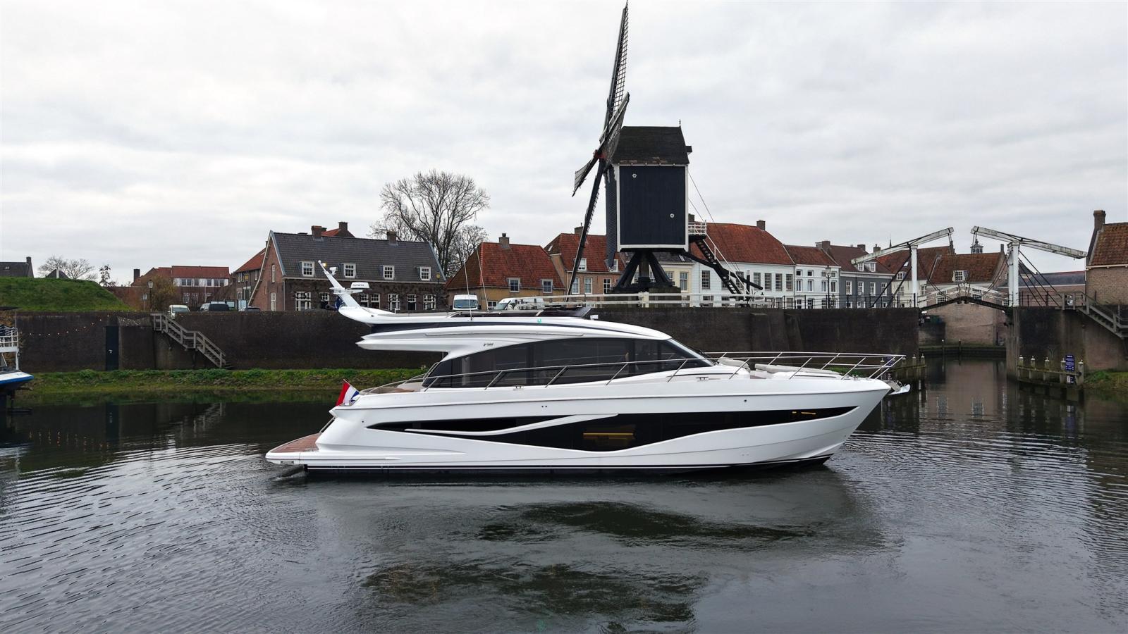 The F58 is a spacious and perfectly proportioned flybridge yacht with comfortable accommodation for six guests spread over three spacious cabins and two bathrooms. The master cabin is equipped with a sofa and a walk-in closet. The stylish design is the result of the collaboration between the Princess Design Studio and the naval architects at Olesinski and gives this yacht the unmistakable Princess signature, where design and performance come together seamlessly.