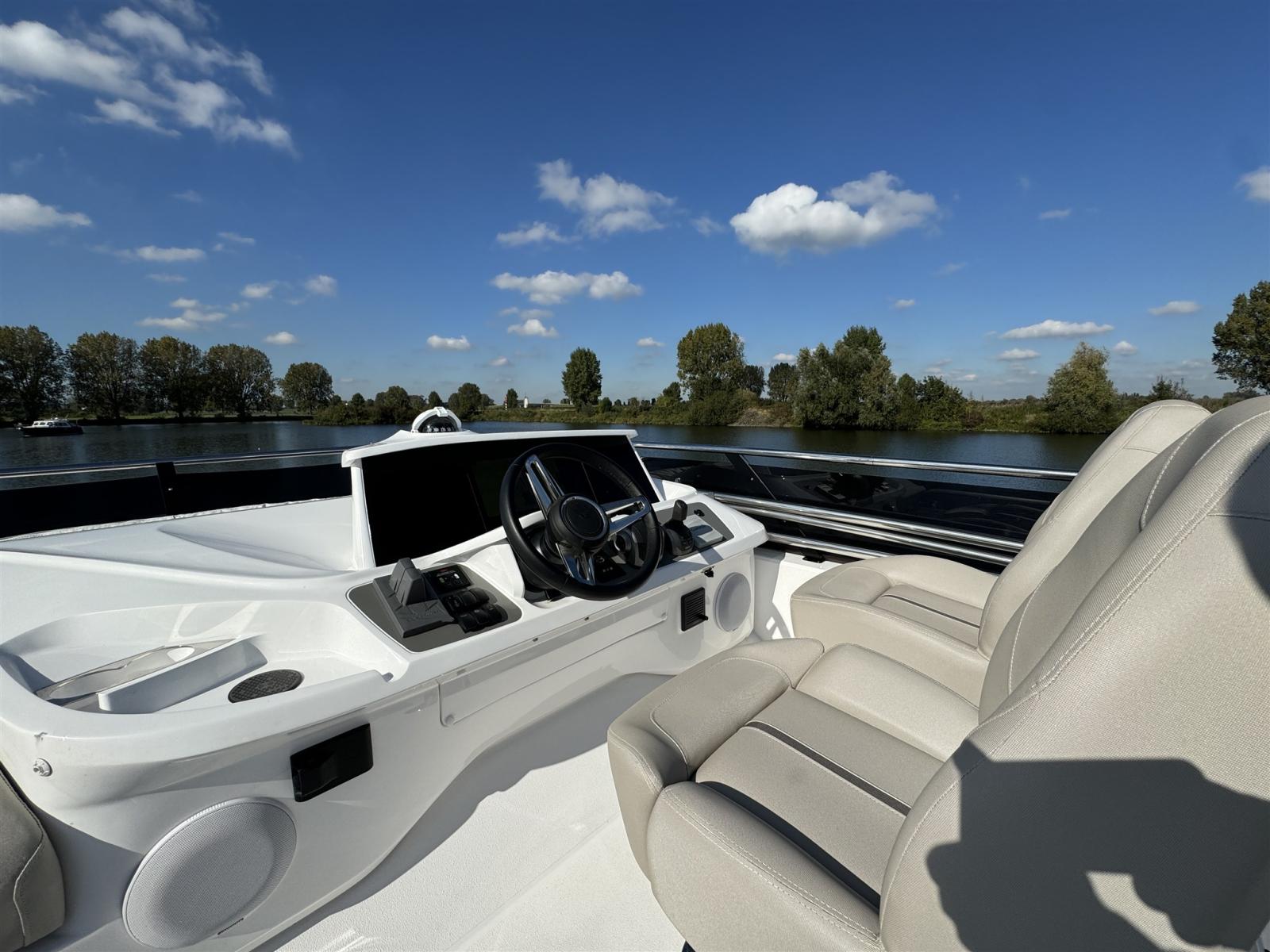 Panoramic windows flood the saloon on the main deck with natural light, allowing you and your guests to enjoy the view. Below deck is the full-beam owner's cabin with its own en-suite.