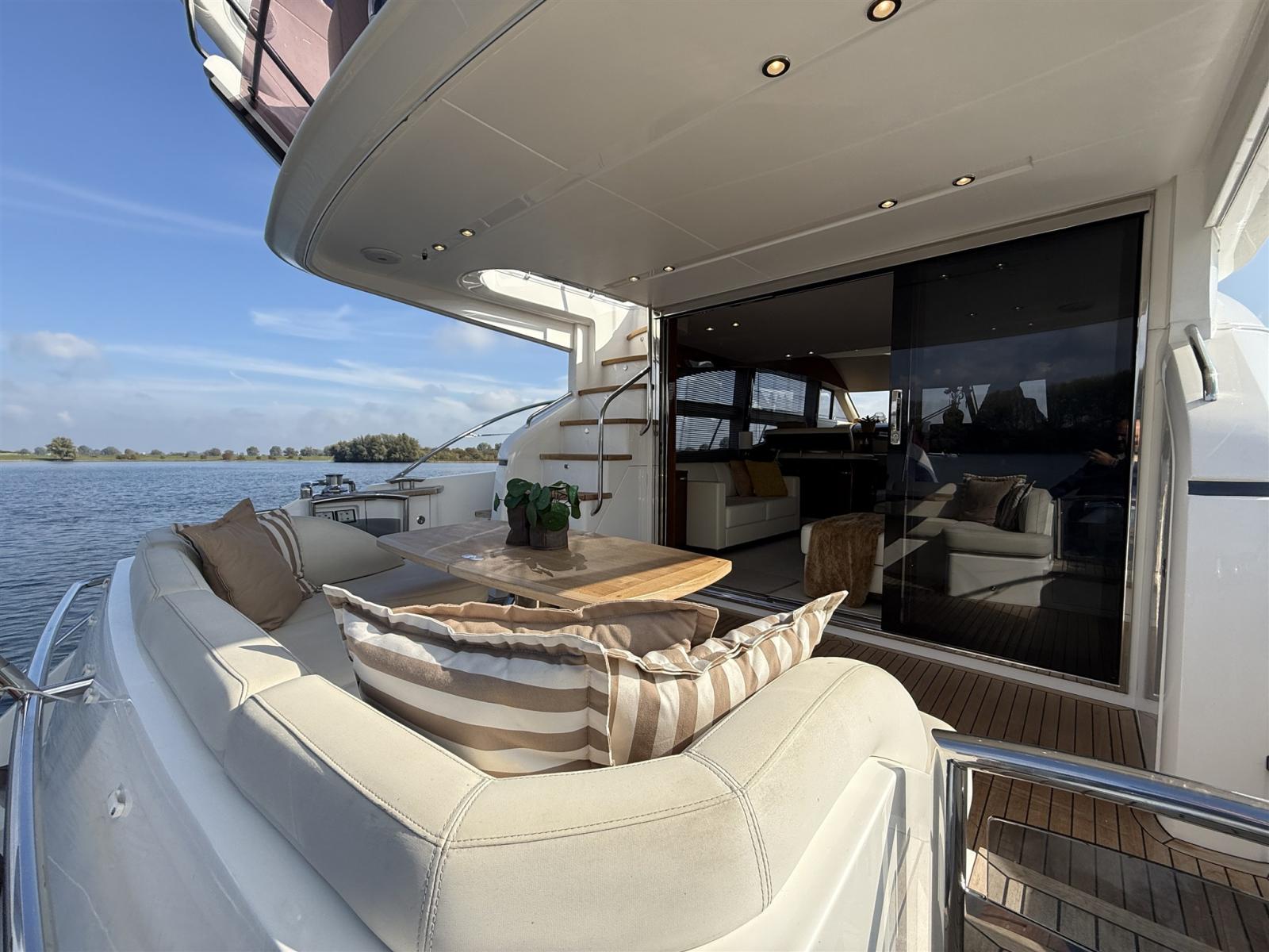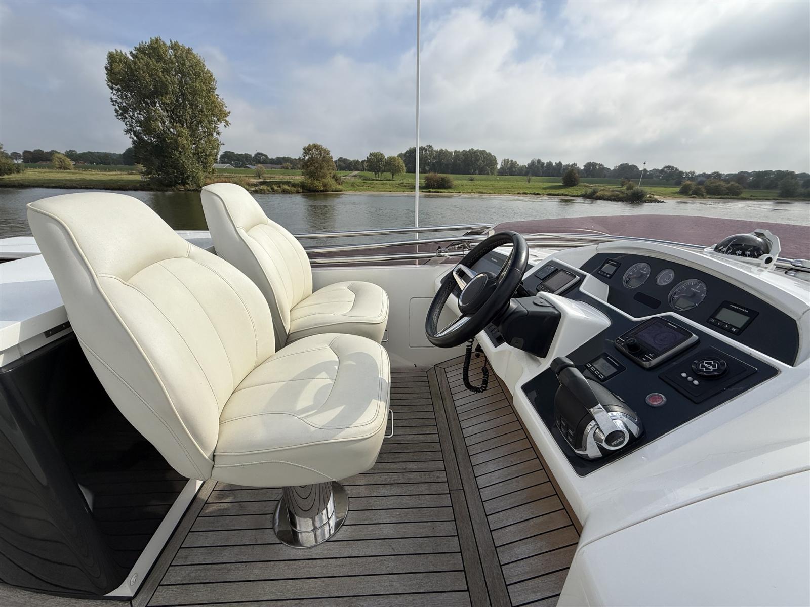 This beautiful Princess 56 from 2015 impressively combines style, performance and comfort. This luxury motor yacht offers a spacious and well-designed interior with high-quality materials and excellent finishes. The salon is bright and inviting with large windows that offer stunning views over the water. Outside, the spacious aft deck, generous flybridge, and hydraulic swim platform provide plenty of space to relax or entertain guests. Thanks to two powerful Volvo Penta engines, each with 800 hp, and advanced technology, the Princess 56 offers a smooth and stable ride. The vessel is richly equipped and features, among other things: yacht control, remote control, gangway and a hydraulic swimming platform. In short, a perfect yacht that exudes elegance and class, ready for many new adventures on the water.