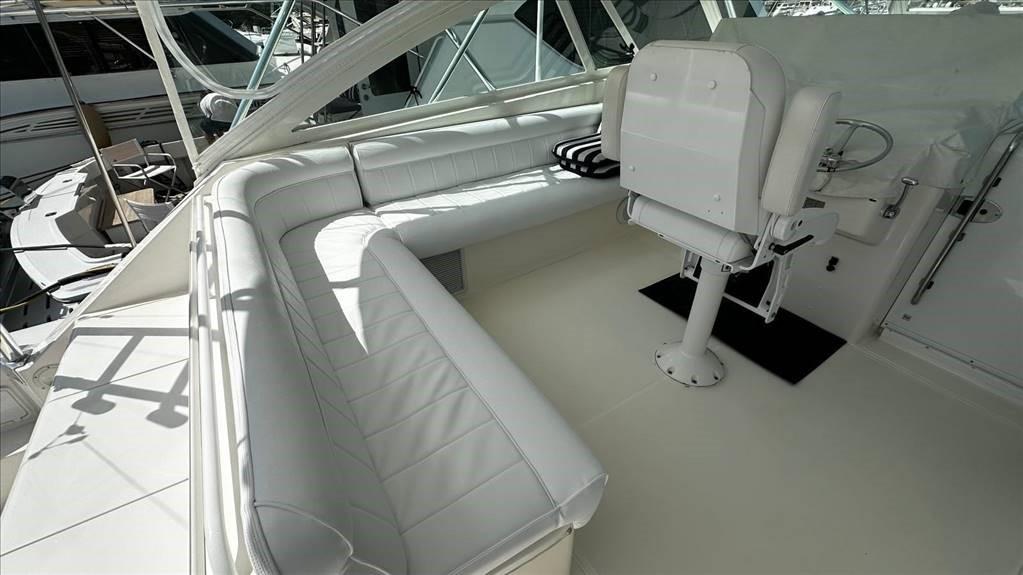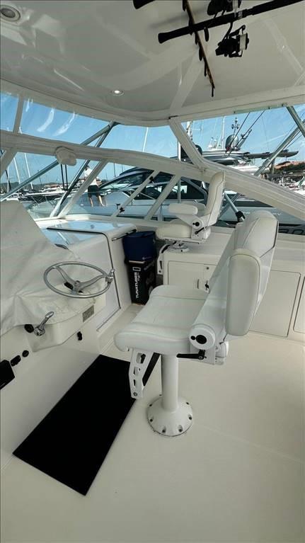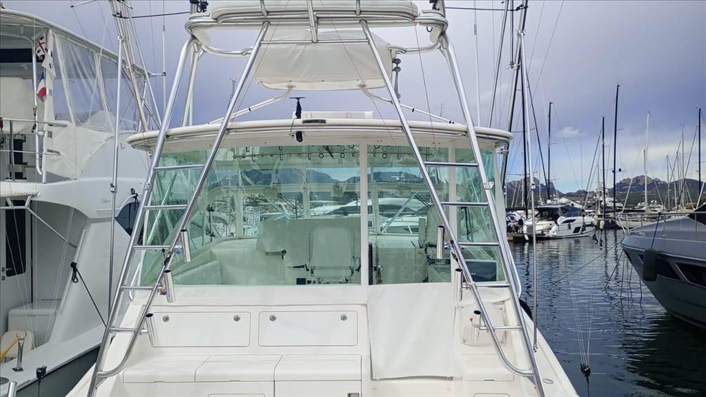 Anchor and chain (stainless steel) - Chain counter - Electric winch - Bow thruster - Cockpit shower - Air conditioning - Tuna tower - Windshield - Internal rod holders - Live fish tank - Refrigerated fish tank - TTOP rod holders - New sheet closure with strataglass - New cockpit sofa cushions.
