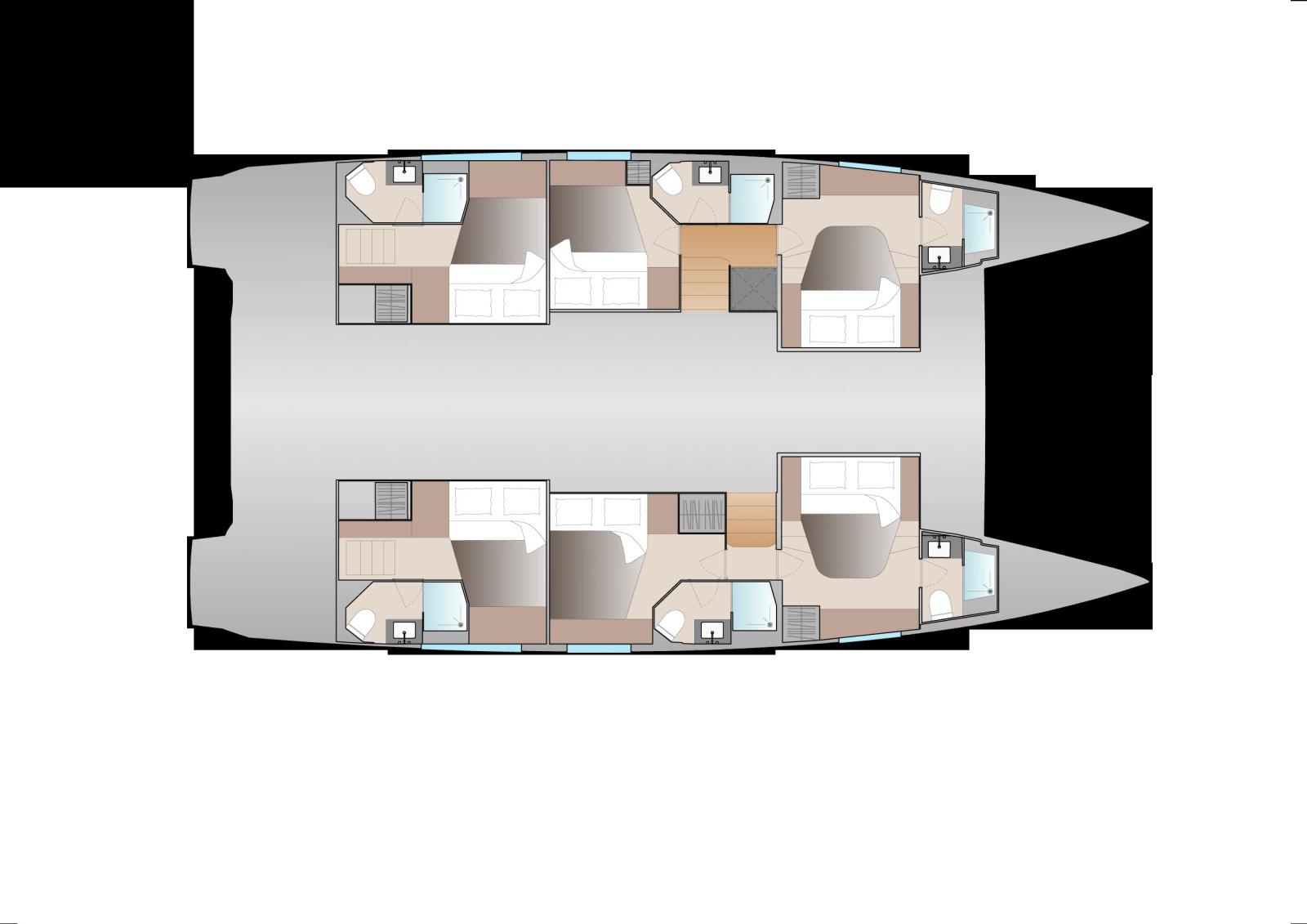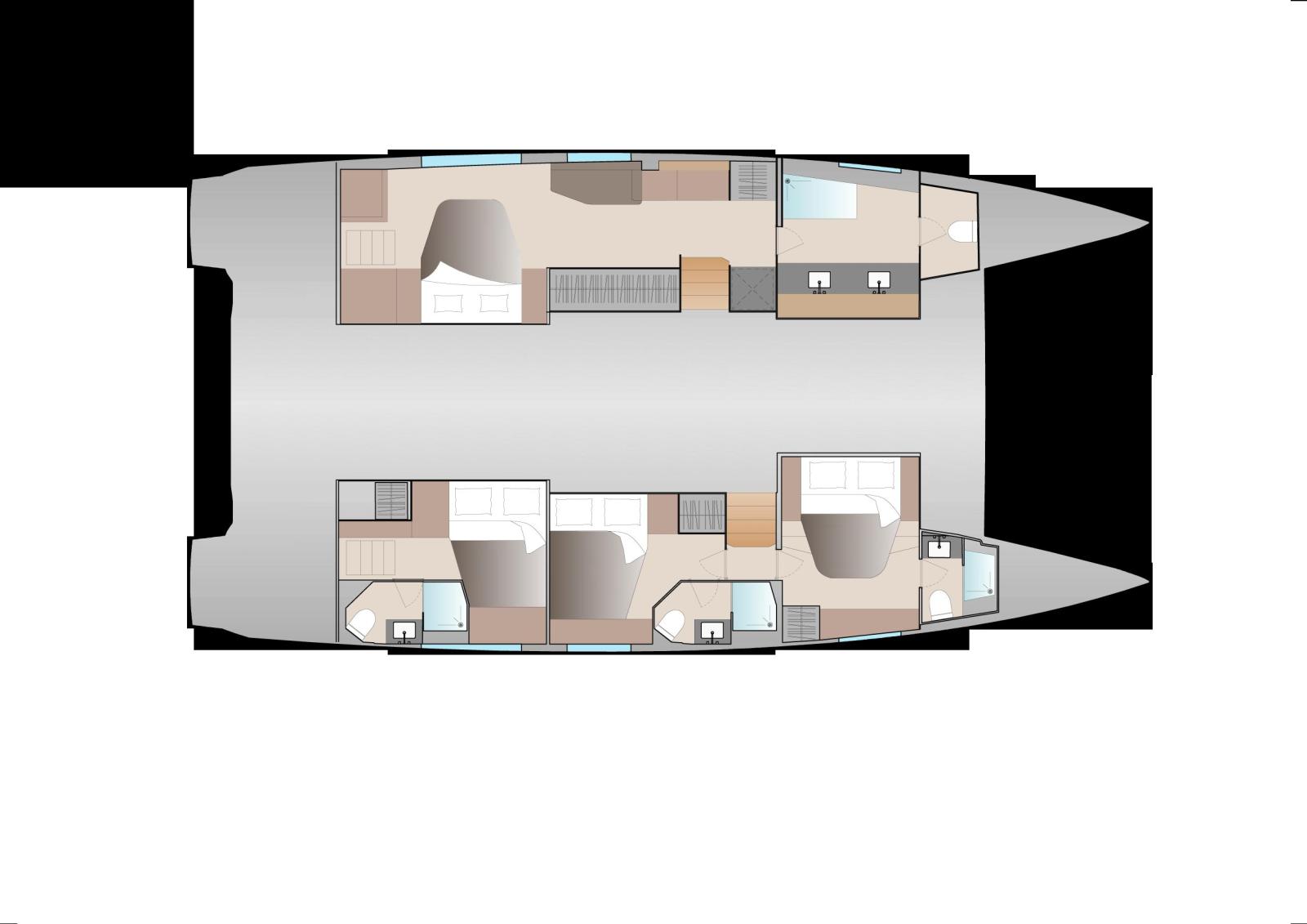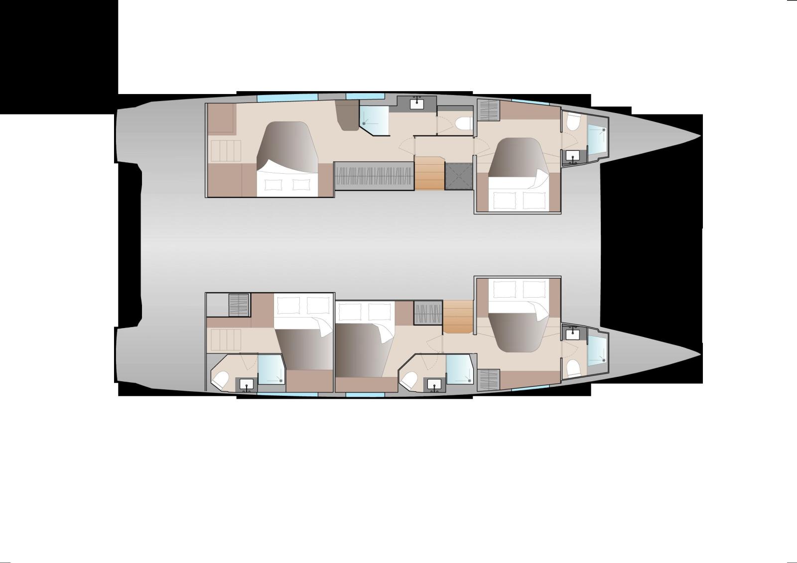 Cabins: Available in several configurations (4, 5 or 6 cabins), the Aura 51 offers: