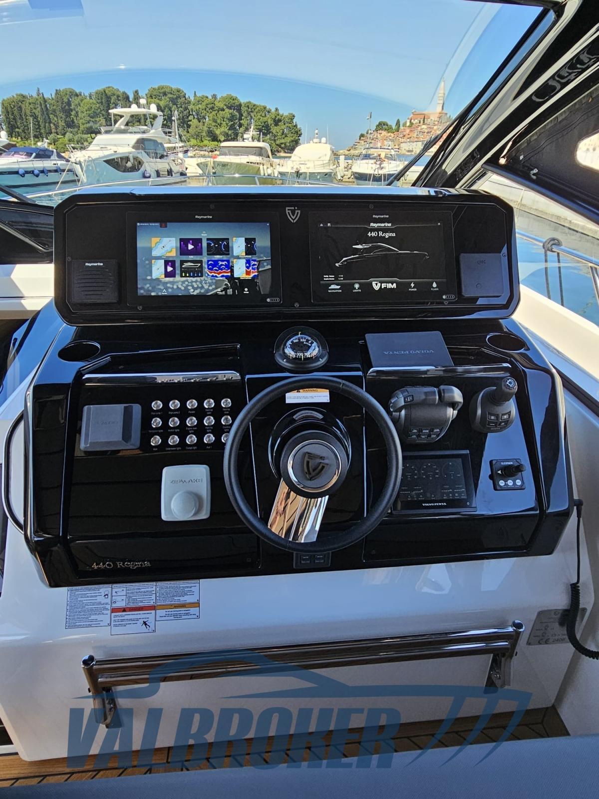 FIM 440 REGINA, the latest model presented by FIM, exterior design by Alessandro Lottici. Captivating lines combined with a large windshield and excellent air circulation in the cockpit thanks to the opening Hard Top. It offers a large full-beam aft owner's cabin, an elegant dinette in the bow, electrically convertible into a real second cabin and two bathrooms. The interiors are modern with luxurious and refined materials. On the exterior, the elegance of the design blends perfectly with the sporty spirit of this new 100% Made in Italy model.