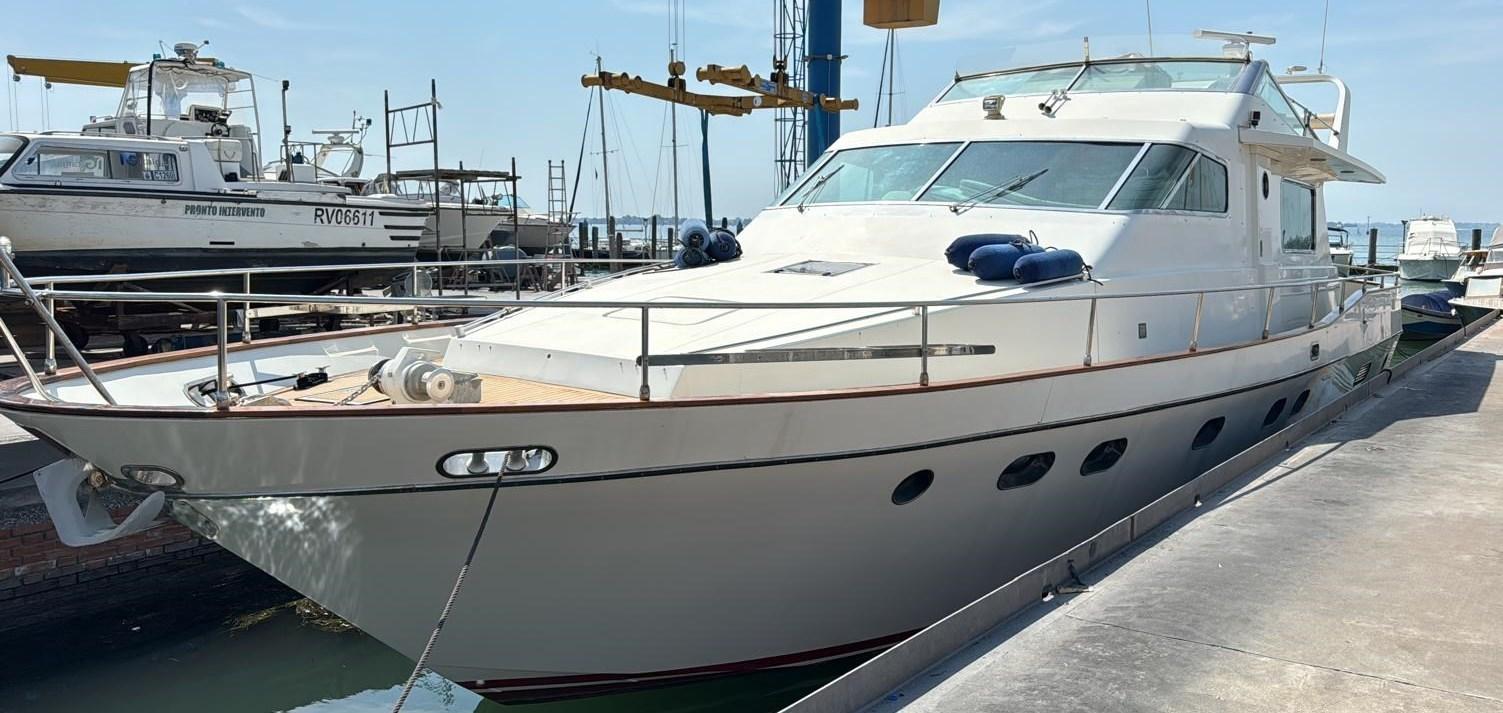 Engine Alarm, 2 Water pressure pump, 8 Batteries (4 nuove 2024 - 4 nuove 2025), Teak Side Decks, Guard rail, Deck Shower, Directional Spotlight, Hydraulic Flaps, Flaps Indicators, Courtesy Lights, Gangway, Platform (maggiorata in teak), Automatic Bilge Pump, Entry door, 2 Side door, Teak Cockpit, Shorepower connector, Water harbor connector system, Rollbar, Electric Windlass, swimming ladder, Saddles for tender, cockpit table, Horn, Stern Winches.