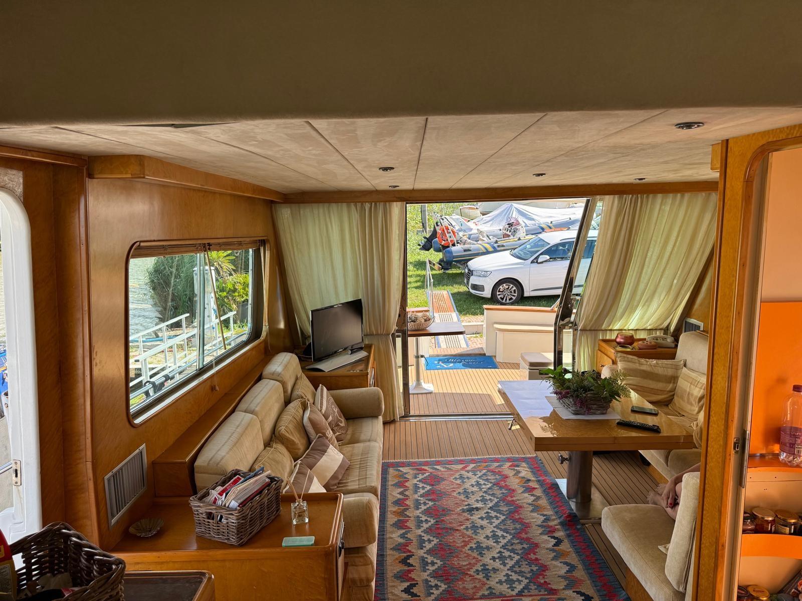 Air Conditioning (Condaria), Warm Water System (elettrico), Fuel Tank Indicator, Water Tank Meter, Interior wooden floor (in simil teak), 12V Outlets, 220V Outlets, 3 Electric Toilet.