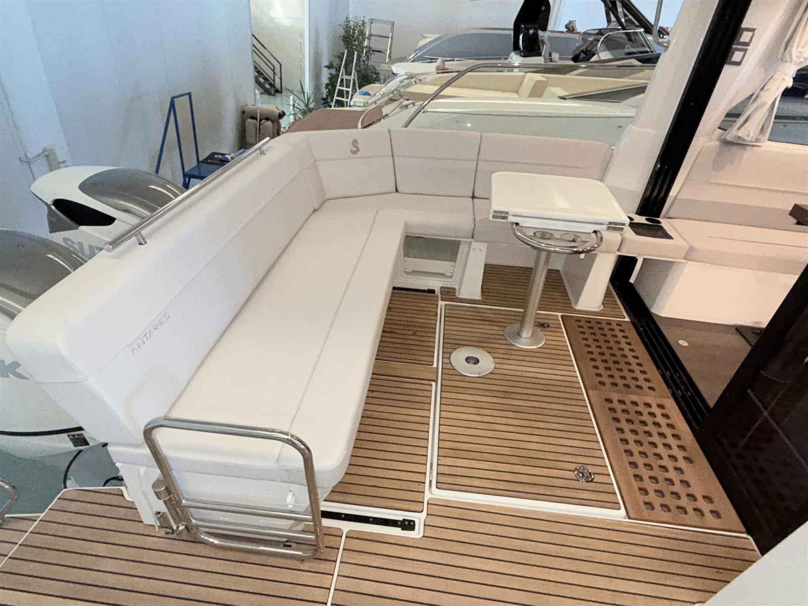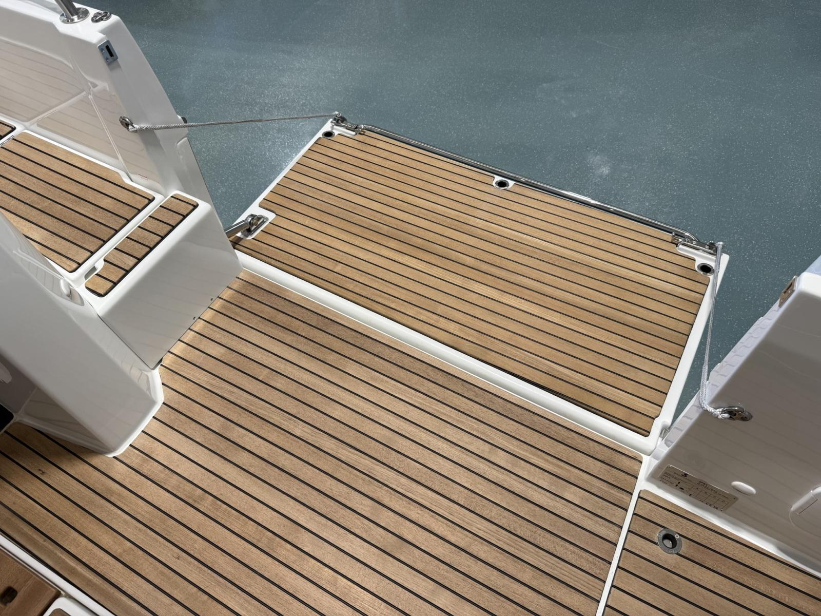 Fume/Gas Detector, Engine Alarm, Water pressure pump, Deck Shower, Electric Flaps, Hard top, Flaps Indicators, Courtesy Lights, Fenders, Platform, Automatic Bilge Pump, Manual Bilge Pump, Side door, Teak Cockpit, Shorepower connector, Electric Windlass, swimming ladder, cockpit table, Horn.