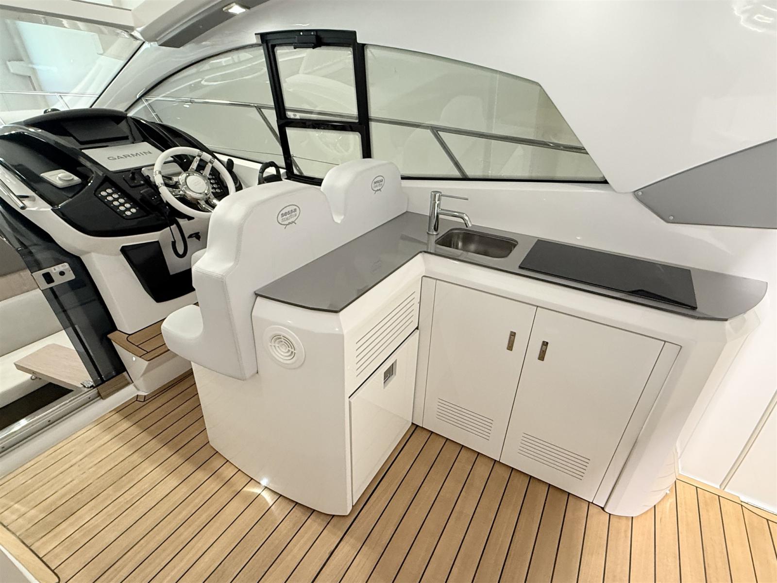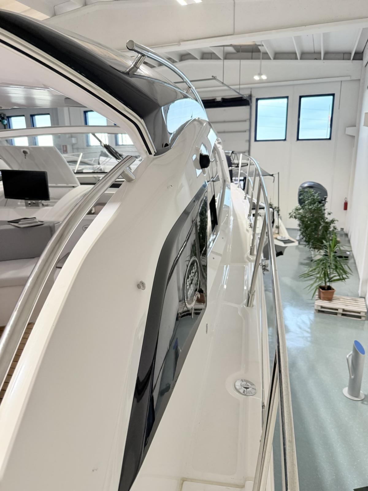 Engine Alarm, Bilge Alarm, Electric Engine Compartment Opening, Water pressure pump, Deck Shower, Electric Flaps, Tender Garage, Hard top, Fire Extinguishing System, Flaps Indicators, Washbasin in the cockpit, Courtesy Lights, Gangway, Platform, Automatic Bilge Pump, Teak Cockpit, Shorepower connector, Electric Windlass, swimming ladder, cockpit table, Tender, Horn.