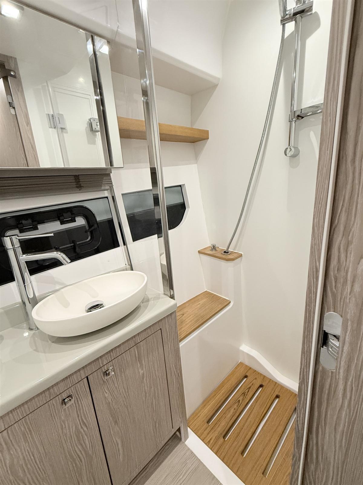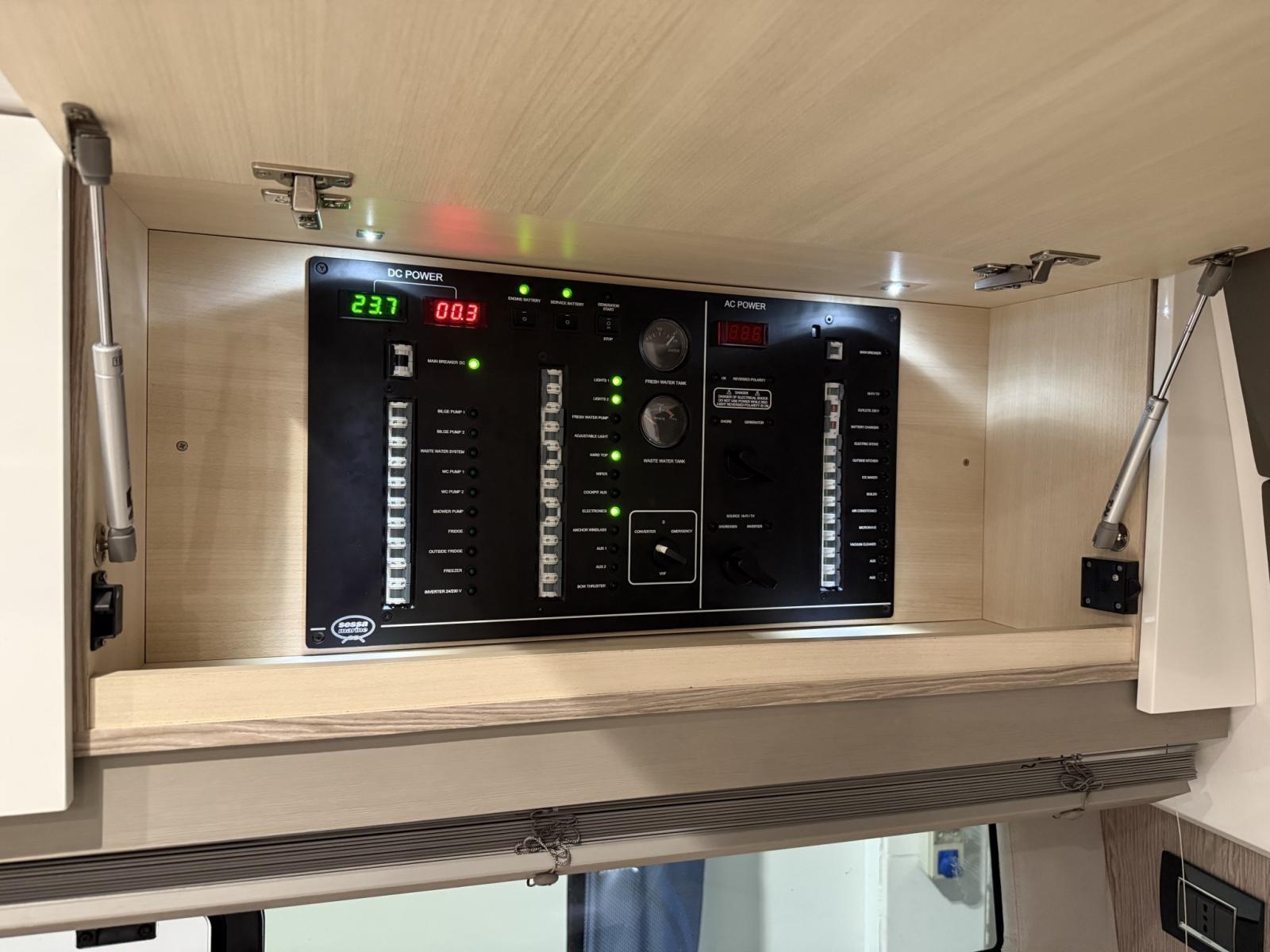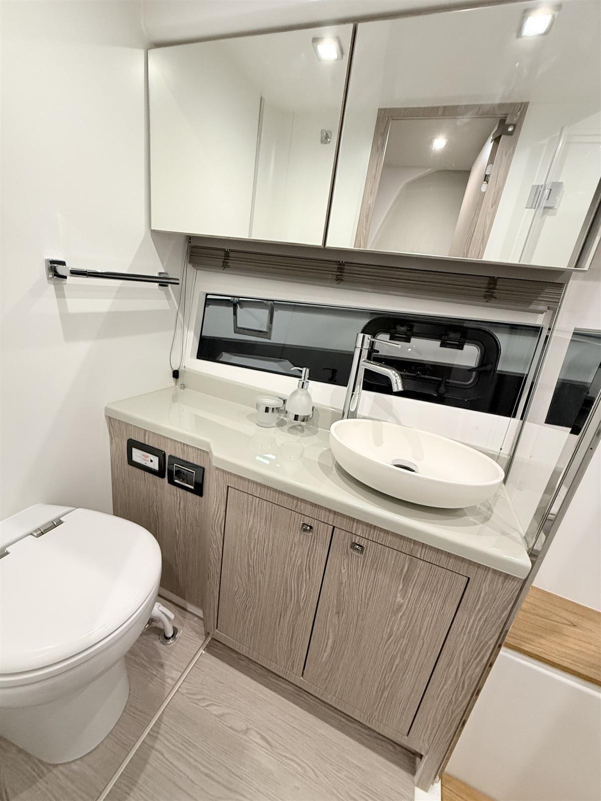 Warm Water System, Inverter Air Conditioning (cabina e pozzetto), Waste Water Plant, Interior wooden floor, 12V Outlets, 220V Outlets, Black Water Tank, 2 Electric Toilet.
