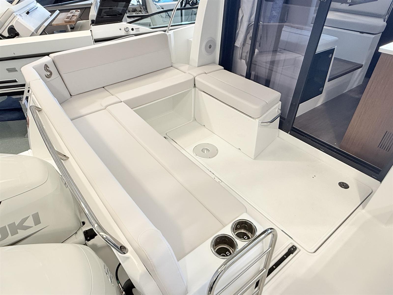 Engine Alarm, Water pressure pump, Deck Shower, Electric Flaps, Flaps Indicators, Courtesy Lights, Platform, Manual Bilge Pump, Side door, Shorepower connector, Electric Windlass, swimming ladder, cockpit table, Living Room Foldable Table, Horn.