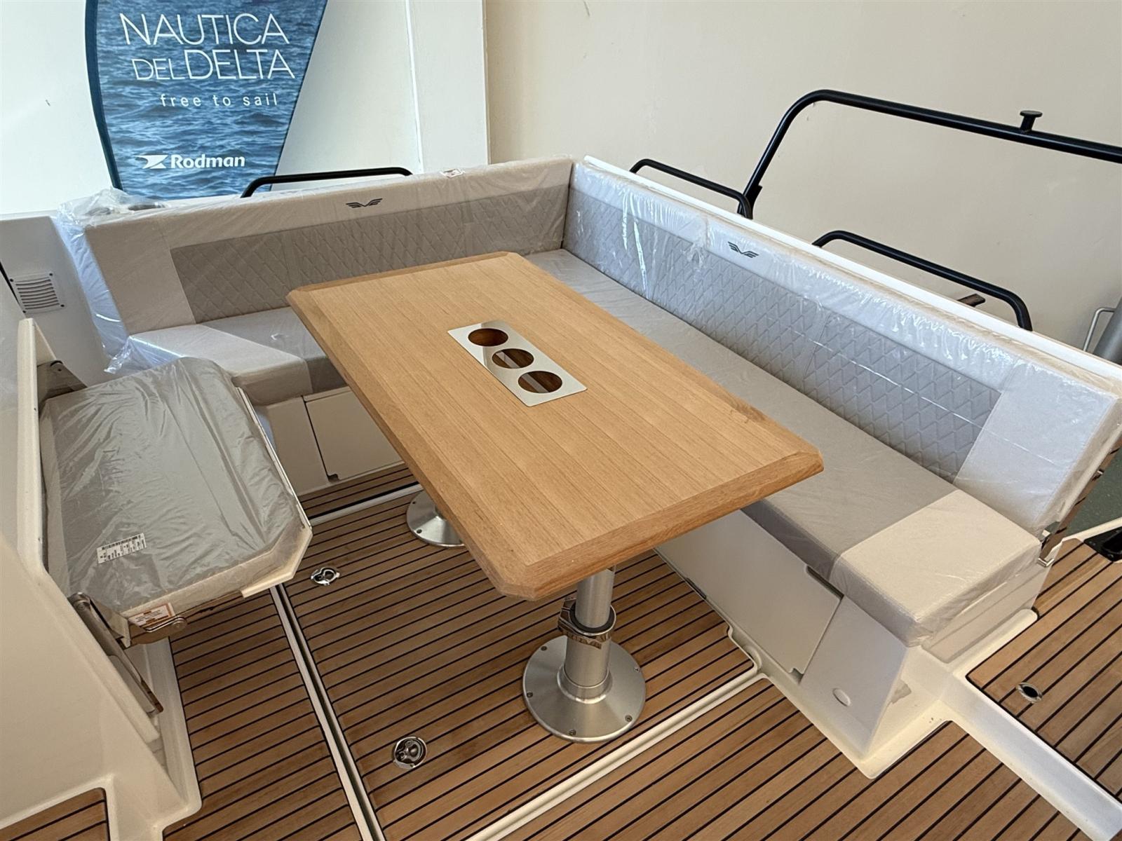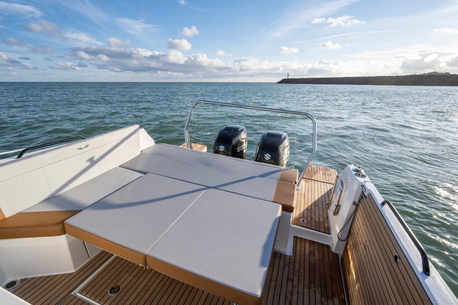 2 Engine Alarm, Water pressure pump, Teak Side Decks, Special Colour, Deck Shower, Tow hook for water skiing, Washbasin in the cockpit, Underwater lights, 2 Platform, Manual Bilge Pump, Teak Cockpit, Shorepower connector, Electric Windlass, swimming ladder, cockpit table, Horn, T-Top.
