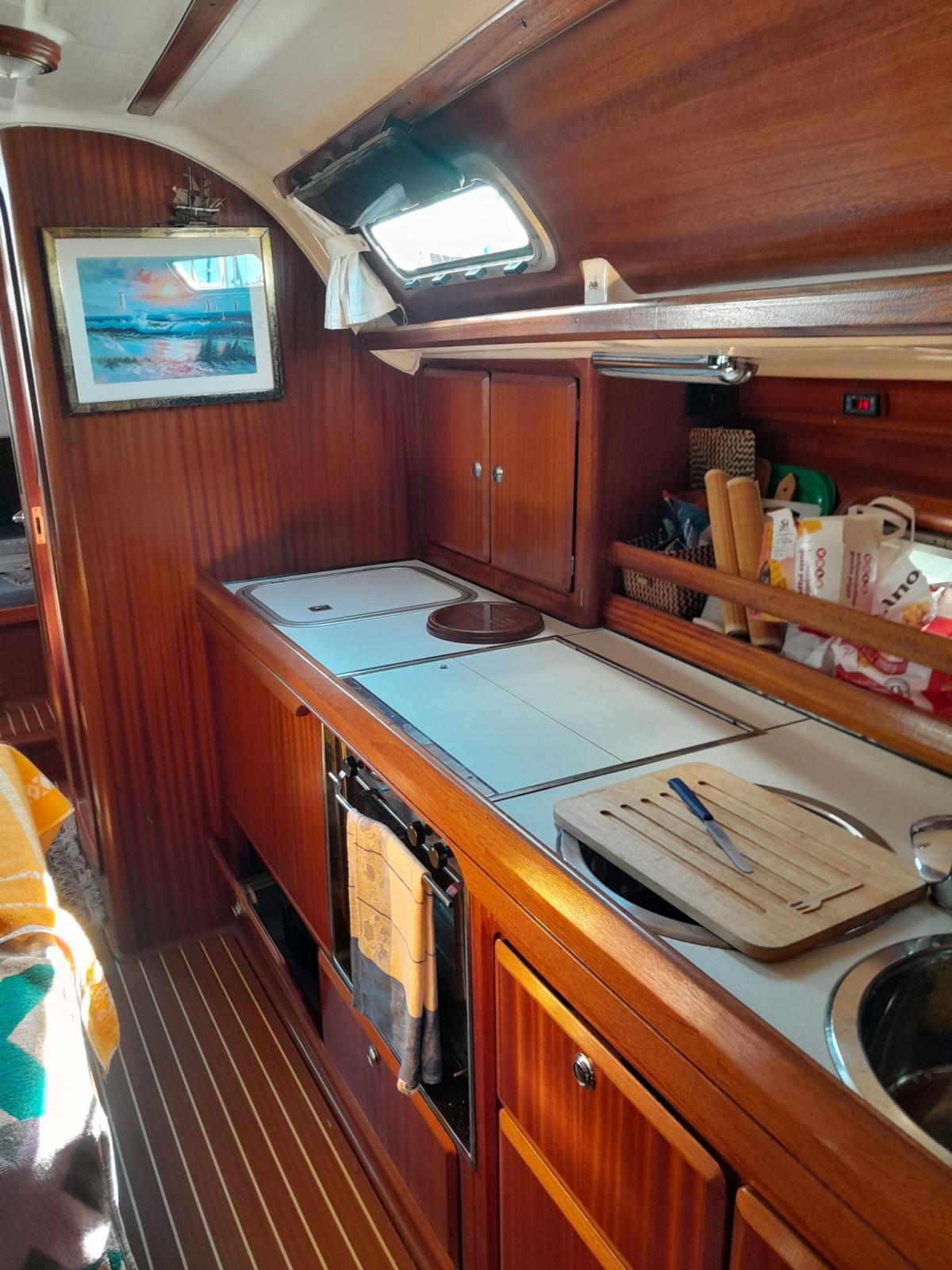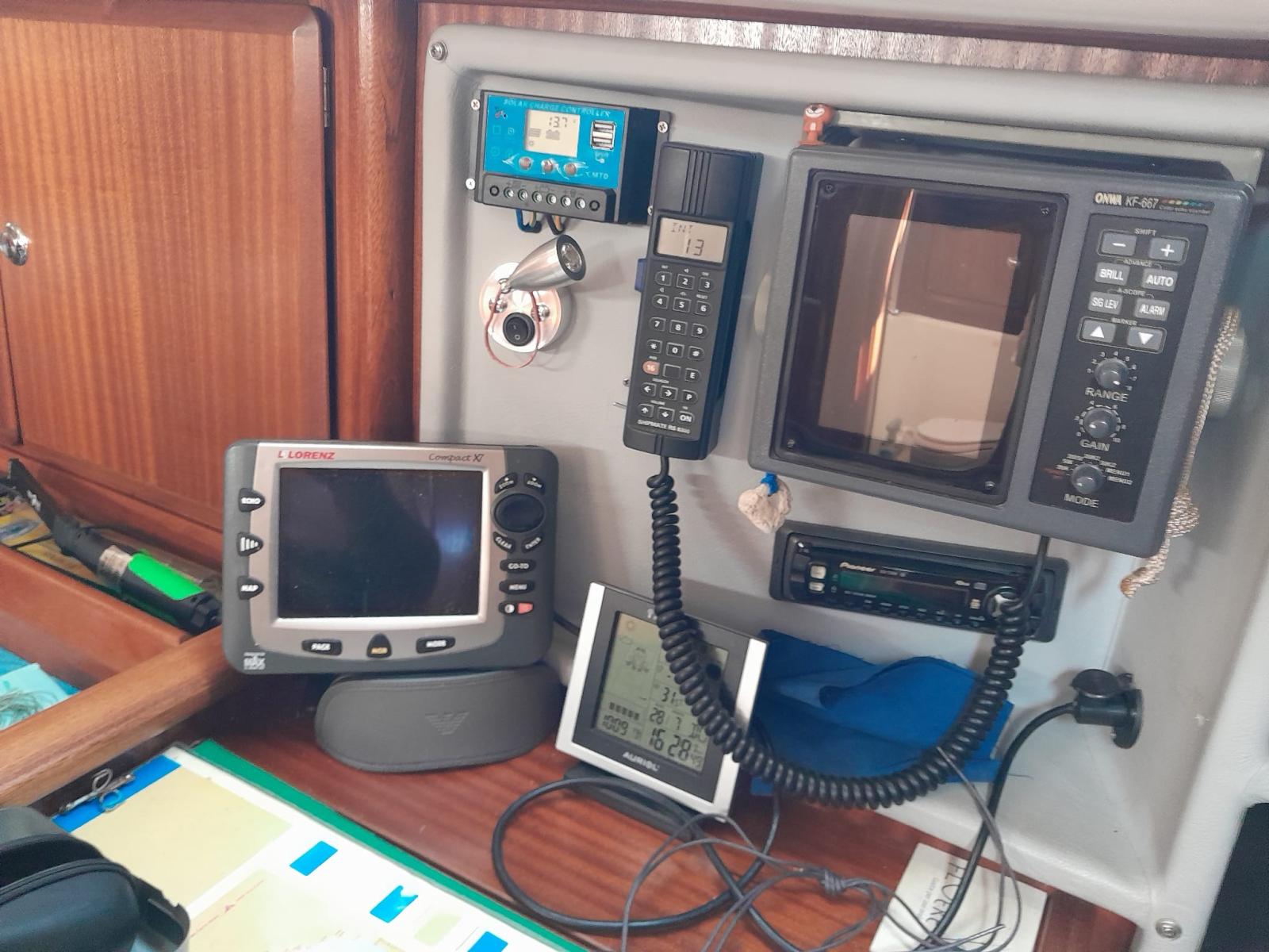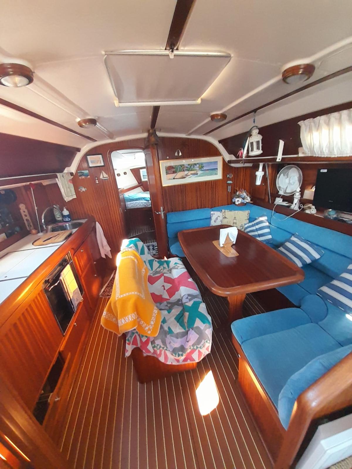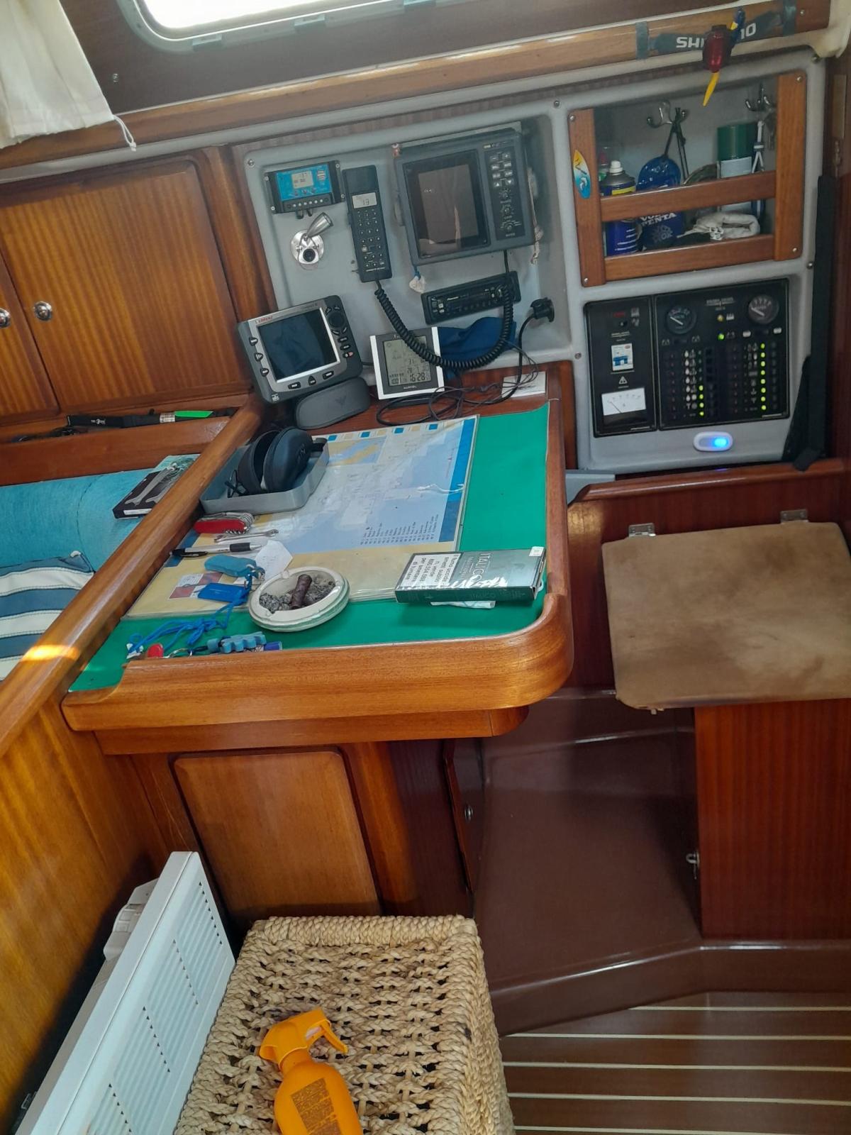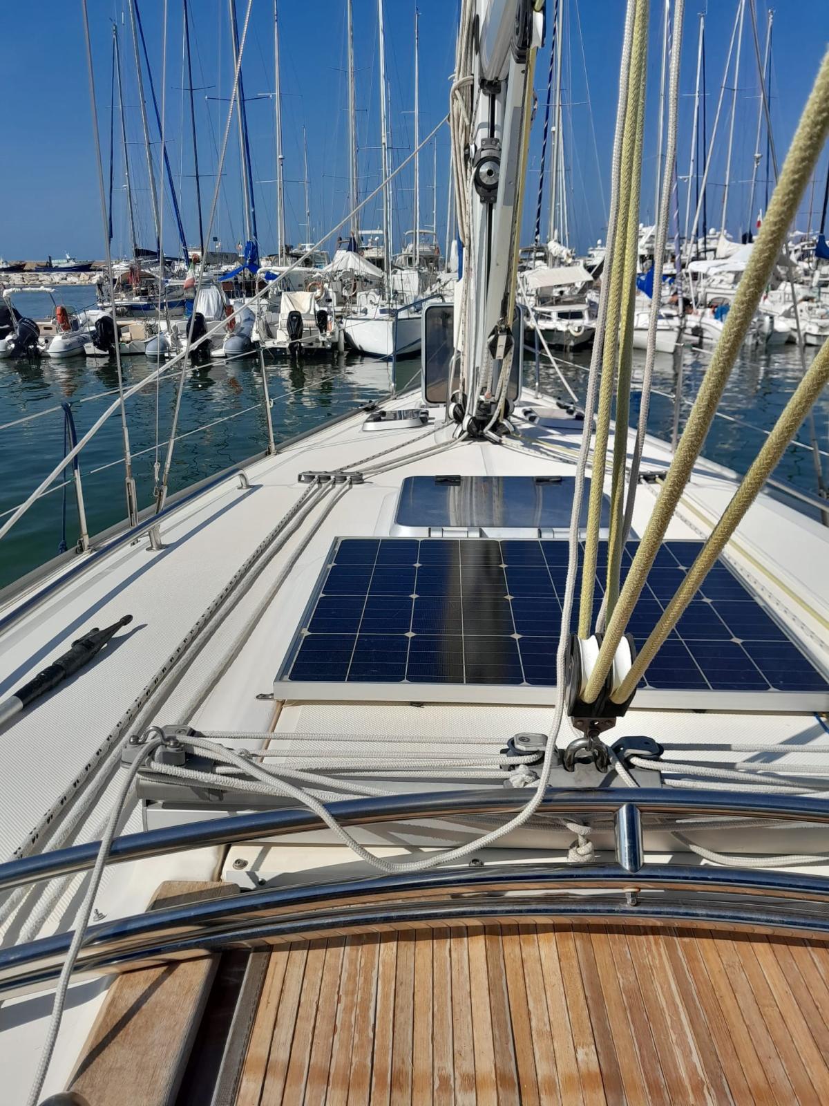 Engine Alarm, Deck Shower, Solar panels (80 w), Manual Bilge Pump, Teak Cockpit, Shorepower connector, Water harbor connector system, Electric Windlass, Strand rigging, swimming ladder, Outboard Engine Support Bracket, cockpit table.