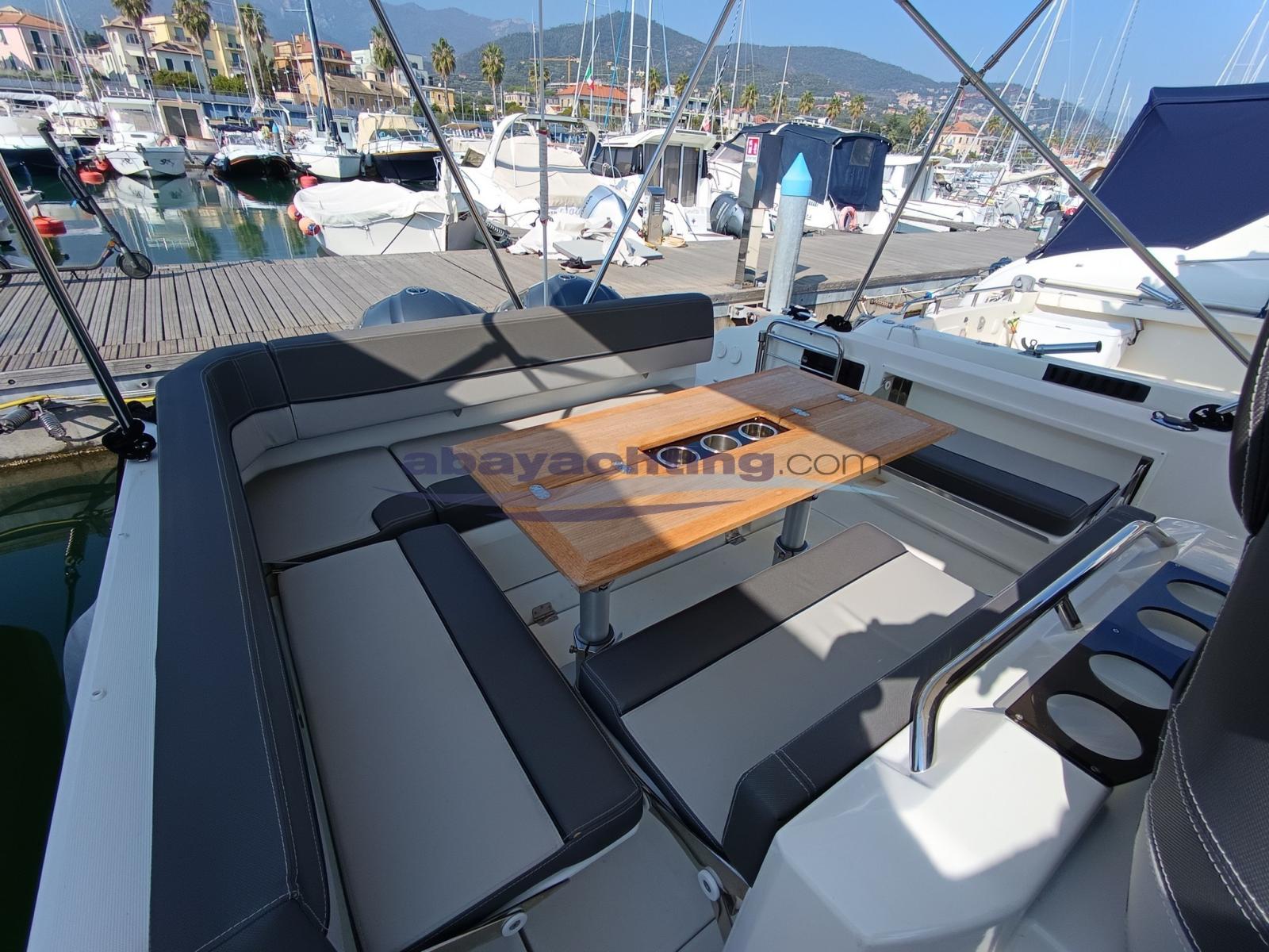 One owner; Two 250 hp Yamaha engines with very few hours of use. Equipped with bow thruster, convertible cockpit table, bimini top for cockpit cover, double refrigerator (inside + outside) and complete electronics.