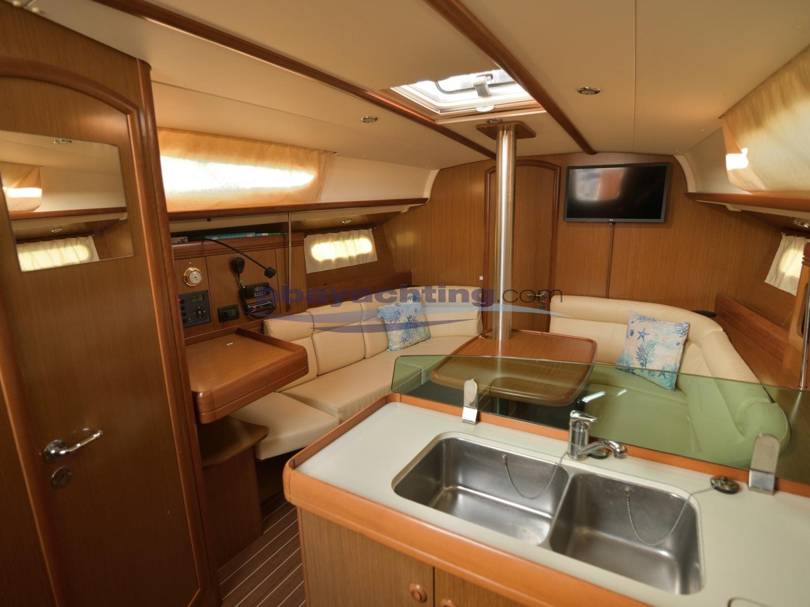 Jeanneau Sun Odyssey 36i with 2 cabin layout, 1 bathroom and furling mainsail in the mast. Equipped with bow thruster, 9" Axiom plotter from 2018, radar, renewed cockpit cushions, bimini.