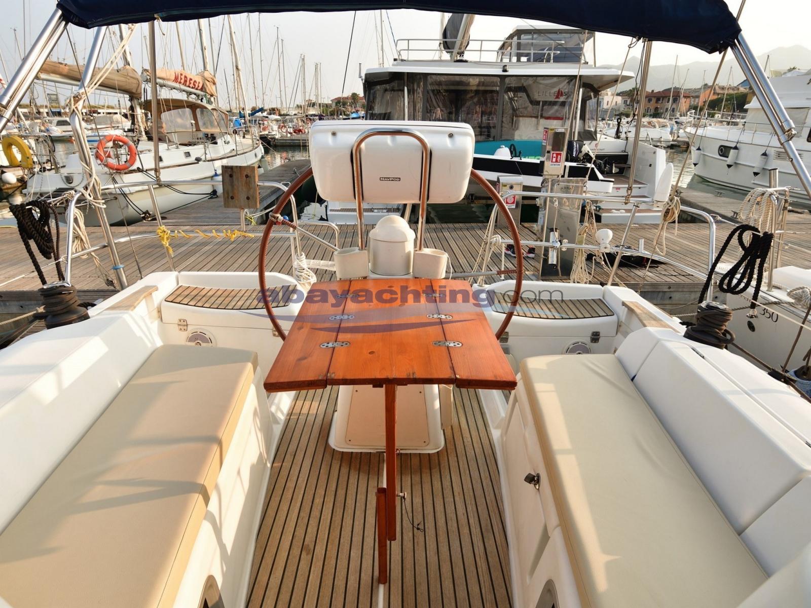 Anchor (Danforth 16kg + catena 50 MT), Water pressure pump, 4 Batteries (4 (1 MOTORE - 2 SERVIZI - 1 BOW T.)), Battery charger (CRISTEC 25A), Deck Shower, Bow Thruster (VETUS A TUNNEL), Tender Crane (A POPPA), Manual Bilge Pump, Teak Cockpit, Shorepower connector, Electric Windlass (QUICK), Strand rigging, swimming ladder, Outboard Engine Support Bracket, cockpit table (pieghevole del 2020), 3 Winch (3 HARKEN ST (2X 40,2 - 1 X 35,2)), Windex.