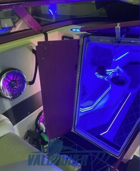 Bluetooth VesselView showing all machine information. You can connect your tablet's screen and open Mercury's VesselView program on it. Lighter and more resistant hull than the original. The toilet was removed from the inside and replaced with a refrigerator.