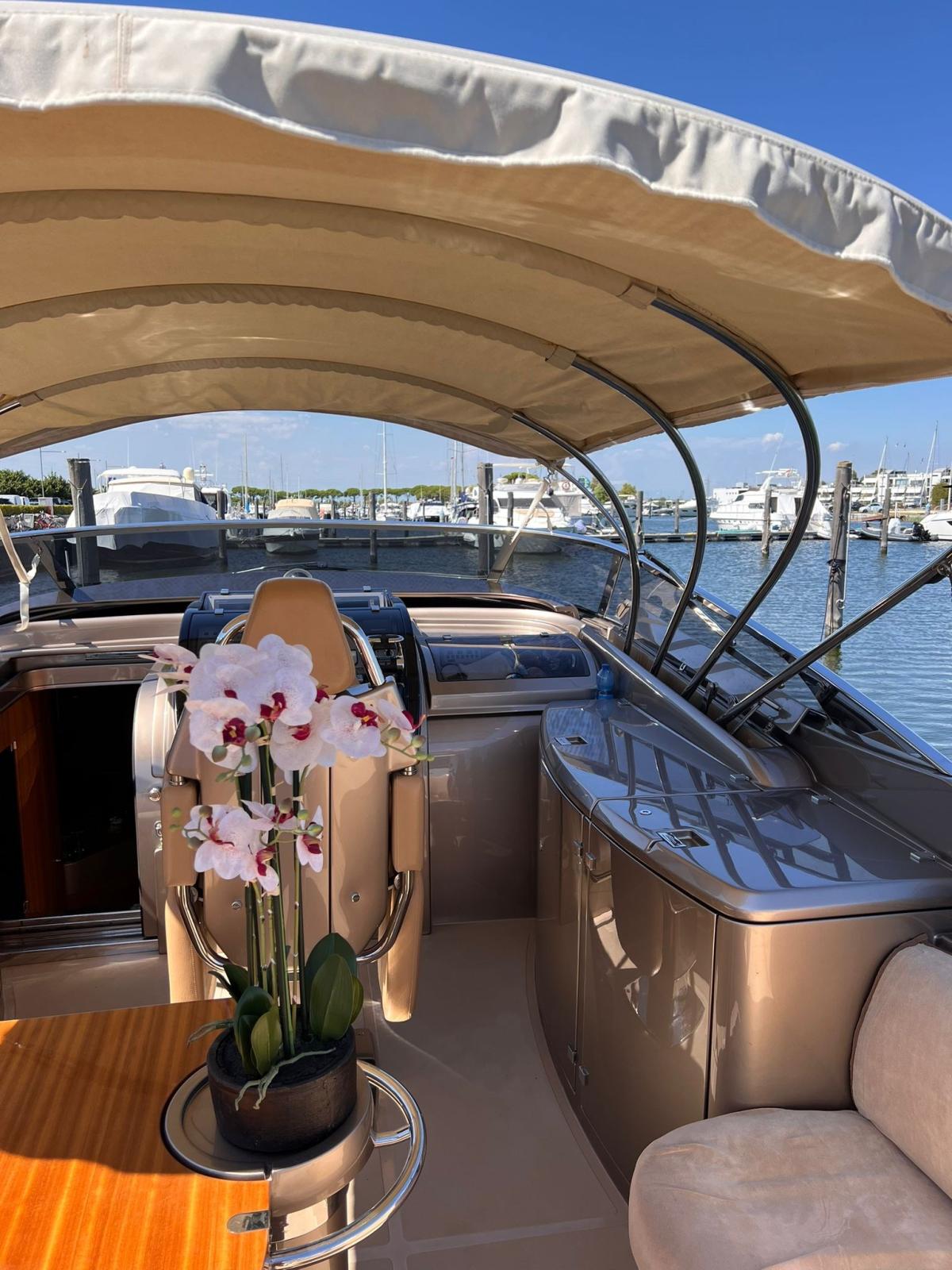 2 Engine Alarm, Bilge Alarm, Water pressure pump, Special Colour, Deck Shower, Hydraulic Flaps, Fire Extinguishing System, Flaps Indicators, Washbasin in the cockpit, Courtesy Lights, Gangway (Idraulica a scomparsa), Platform, 3 Automatic Bilge Pump, Entry door, Shorepower connector, Voltage Rectifier, Electric Windlass, swimming ladder, cockpit table.