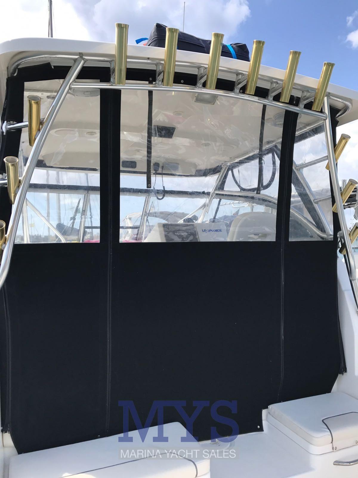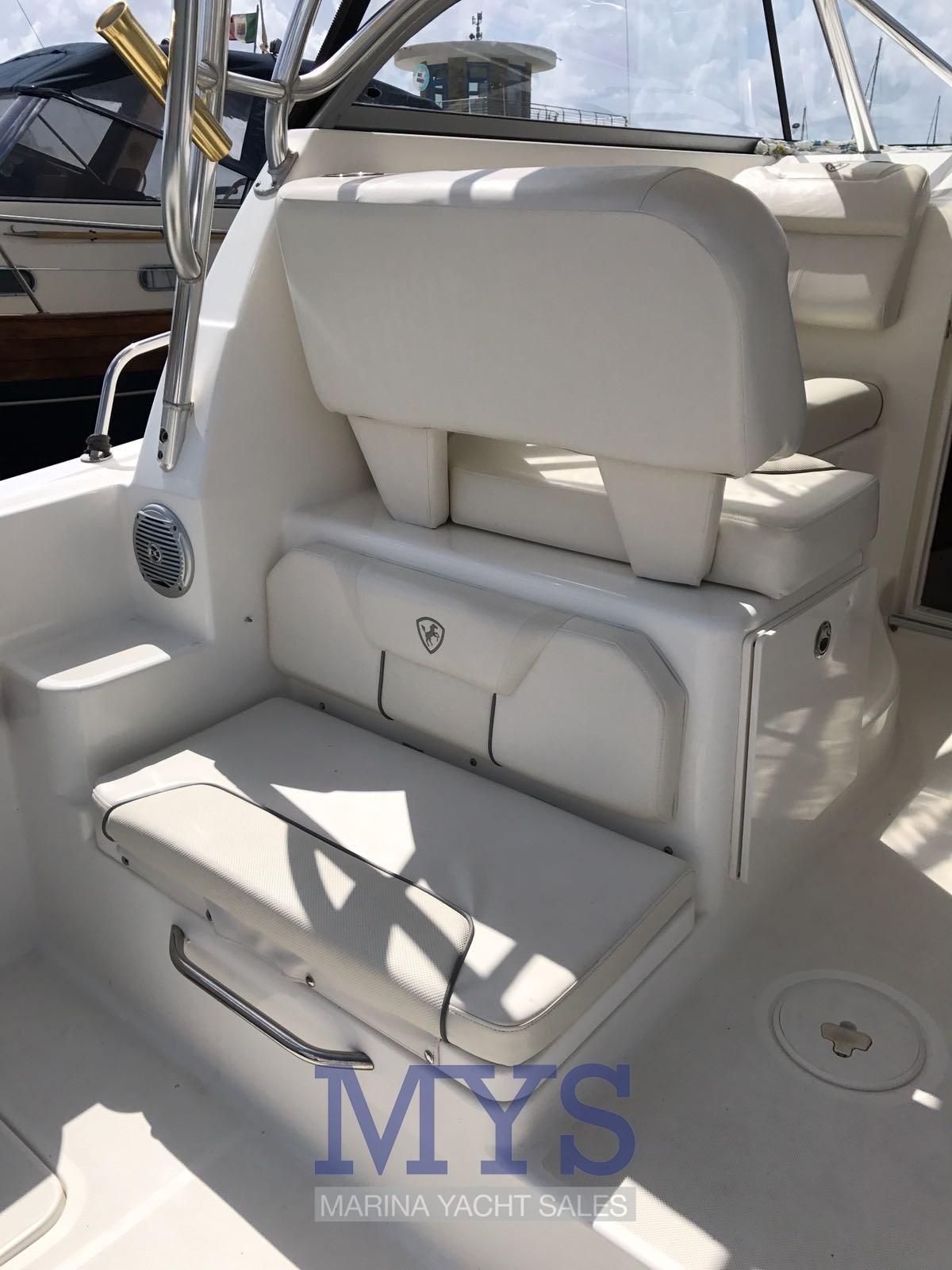 Fume/Gas Detector, Engine Alarm, Water pressure pump, Special Colour, Deck Shower, Headlights fixed on the stem, Electric Flaps, Flaps Indicators, Automatic Bilge Pump, Entry door, Shorepower connector, Electric Windlass, swimming ladder, Horn, T-Top.