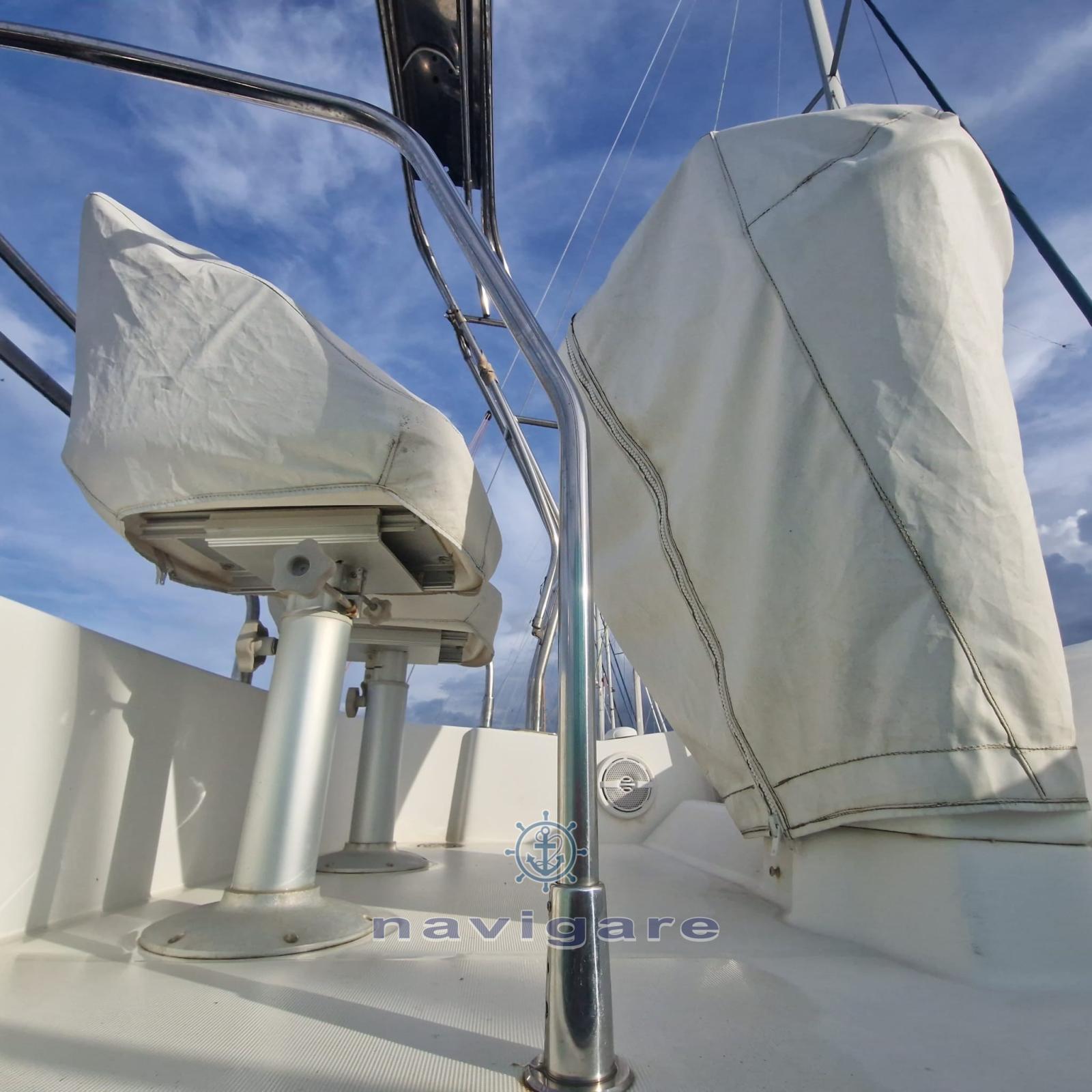 Electronic engine control (Smart Remote Controller, per controllo navigazione e autopilota), Depth Sounder (Raymarine), GPS (Raymarine), Autopilot (ST6001 Raymarine), 2 Plotter with GPS antenna (Raymarine (E120 postazione interna, E80 postazione fly)), Radar (Raymarine), 2 VHF Radio (Raymarine).