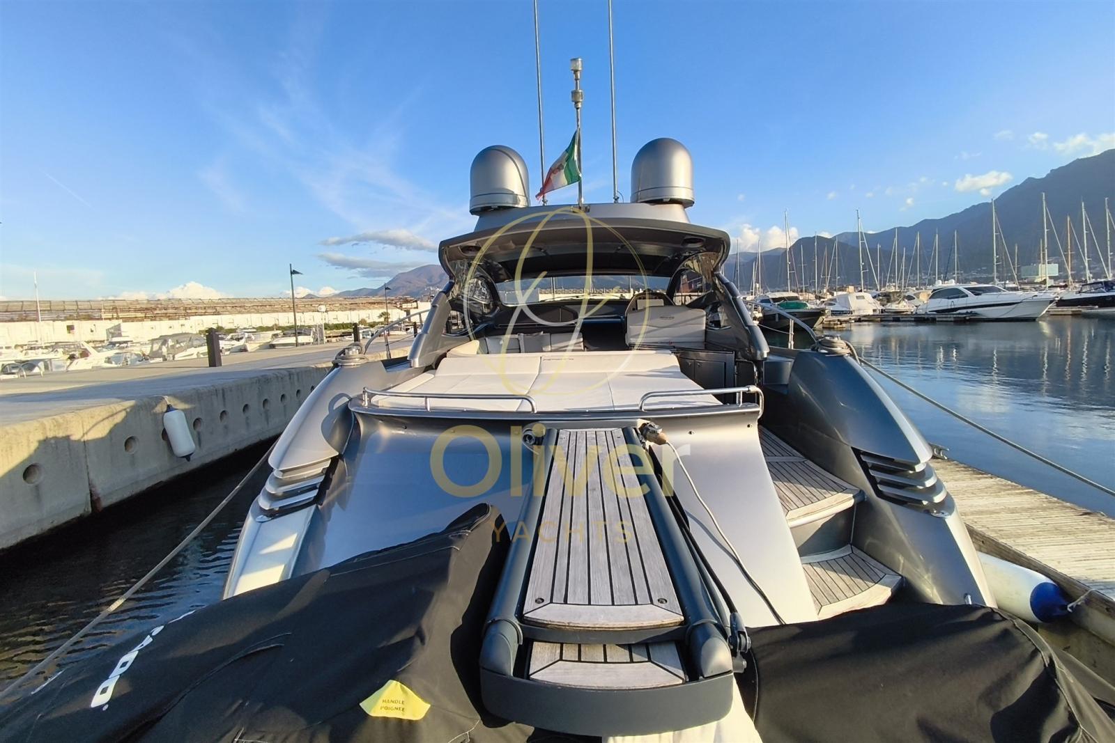 The package is completed by awnings with carbon poles, both for the bow sundeck and for the aft area, an added value in terms of comfort and aesthetics. In the cockpit there is a wet bar with a refrigerator, ideal for outdoor living.