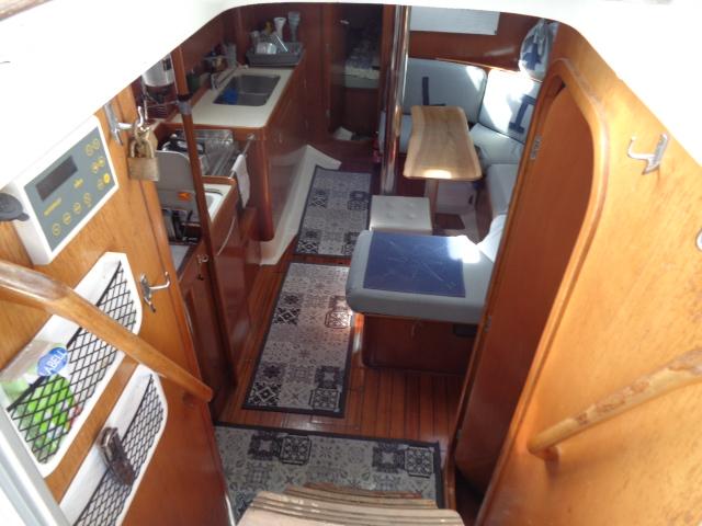 Version with 3 double cabins, a spacious and functional saloon, equipped kitchen area, a chart table, a bathroom with shower, bright and pleasant for life on board. This unit has been regularly maintained, never rented and stored dry every year.