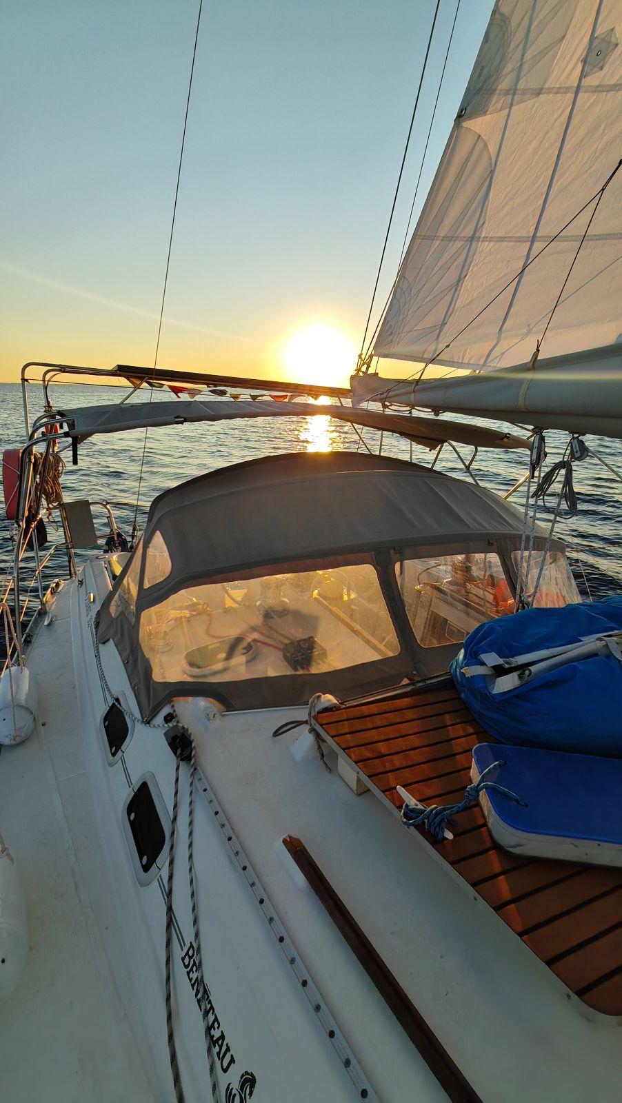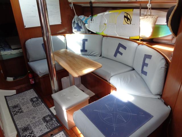 OCEANIS 351 is a plan by Jean Berret, built by the BENETEAU shipyards, with a short keel (1.40m), providing a very good level of comfort with a generous volume due to its beam of 3.80m. It is stable on the road, easy and pleasant to steer.
