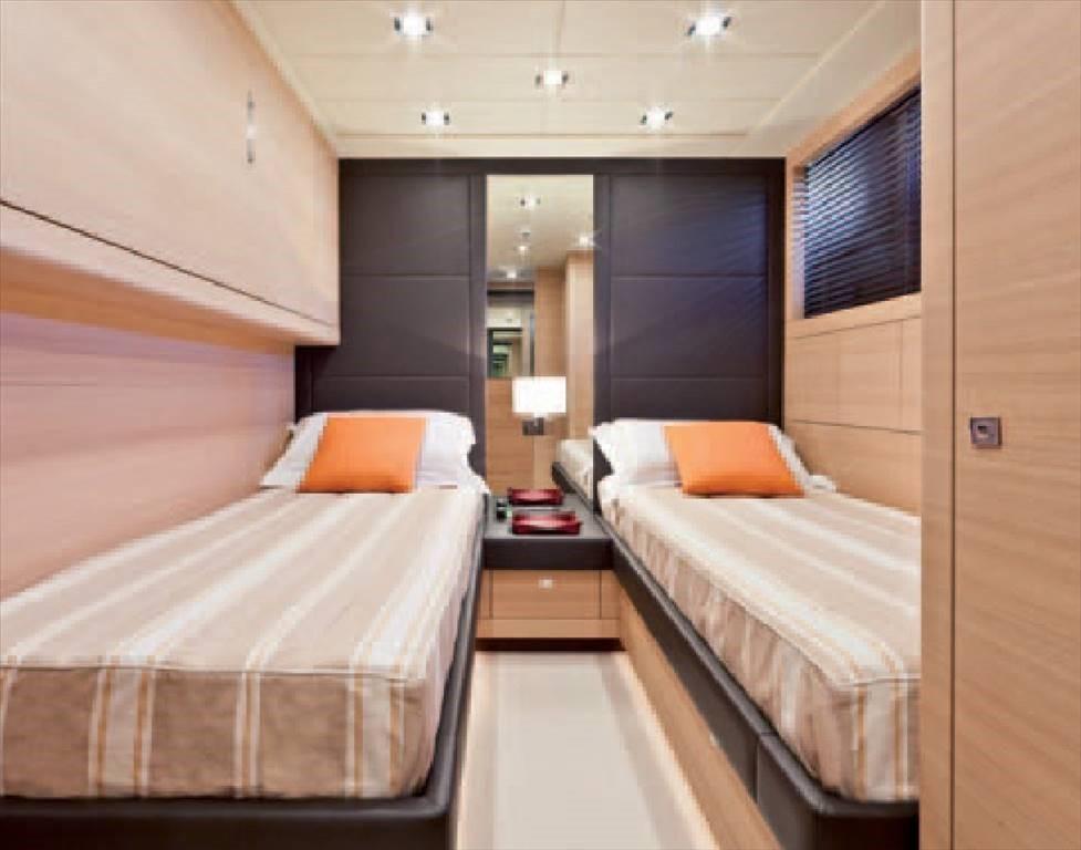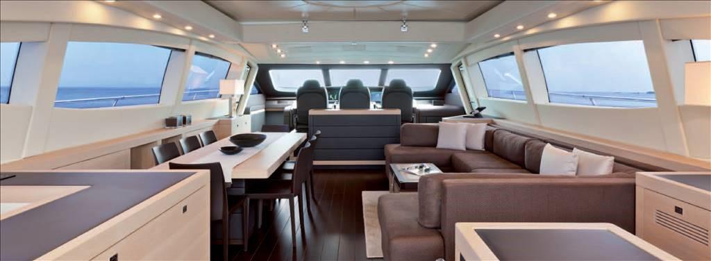 Fume/Gas Detector, Engine Alarm, Bilge Alarm, Water pressure pump, Teak Side Decks, Deck Shower, Directional Spotlight, Electric Flaps, Tender Garage, Hard top (ELETTRICO), Fire Extinguishing System, Flaps Indicators, Anchor Chain Washdown, Courtesy Lights, Underwater lights, Gangway (IDRAULICA), Platform, Automatic Bilge Pump, Manual Bilge Pump, Entry door, Side door, Teak Cockpit, Shorepower connector, Water harbor connector system, Rollbar, Hydraulic Windlass, swimming ladder, Stabilizers (SMART GYRO), cockpit table, Horn, Stern Winches.
