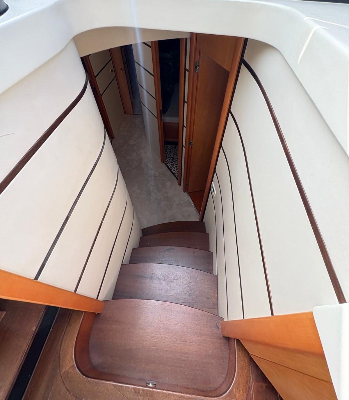 Engine Alarm, Bilge Alarm, Alternator, Water pressure pump, Teak Side Decks, Shore power cable, Special Colour (SCAFO ARGENTO METALLIZZATO E TUGA BIANCA), Guard rail, Deck Shower, Electric Flaps, Hard top, Fire Extinguishing System, Flaps Indicators, Washbasin in the cockpit, Courtesy Lights, Gangway, Platform, Automatic Bilge Pump, Manual Bilge Pump, Teak deck, Entry door, Side door, Teak Cockpit, Shorepower connector, Electric Windlass, swimming ladder, cockpit table, guard rails with gates, Horn.