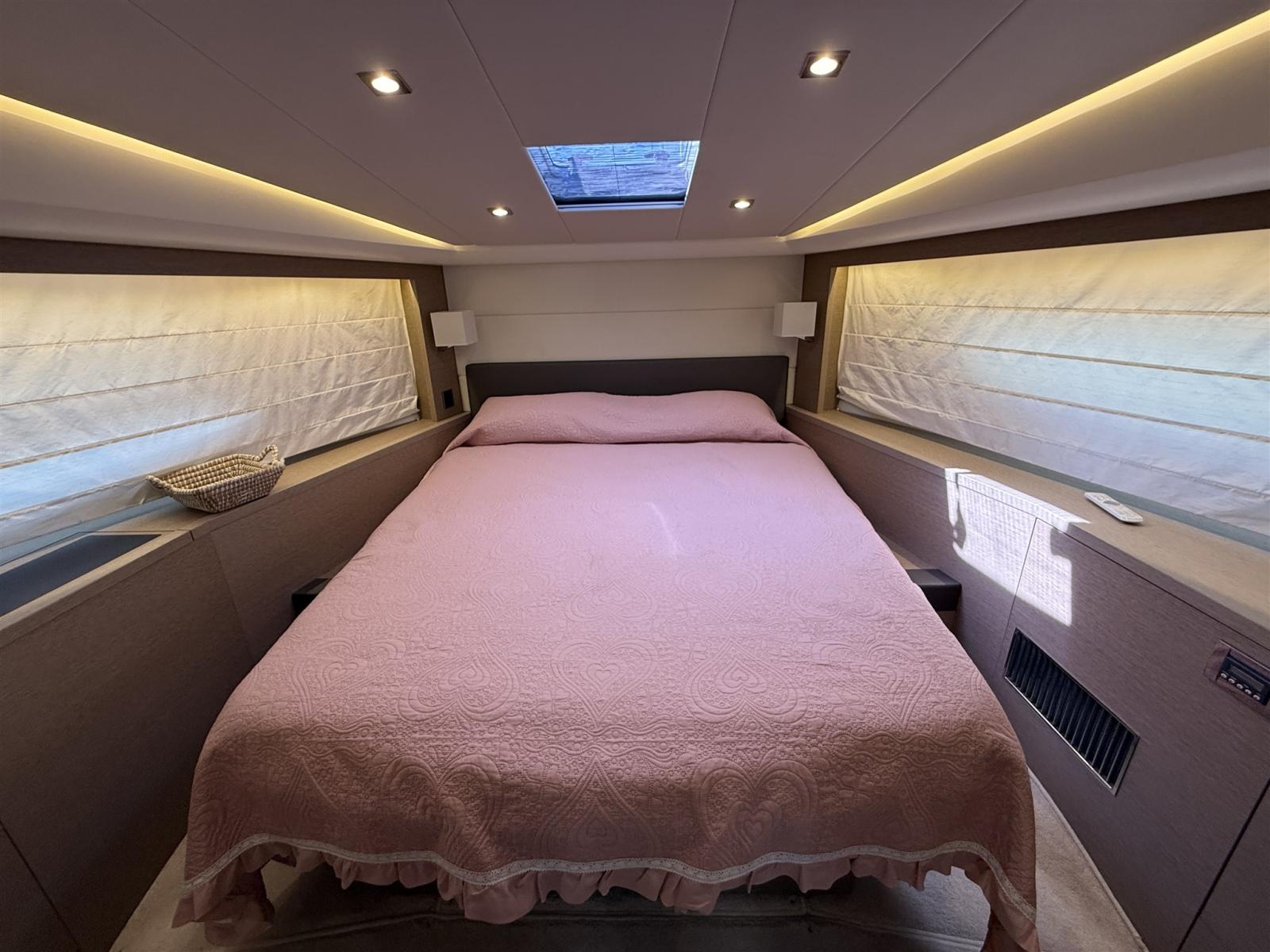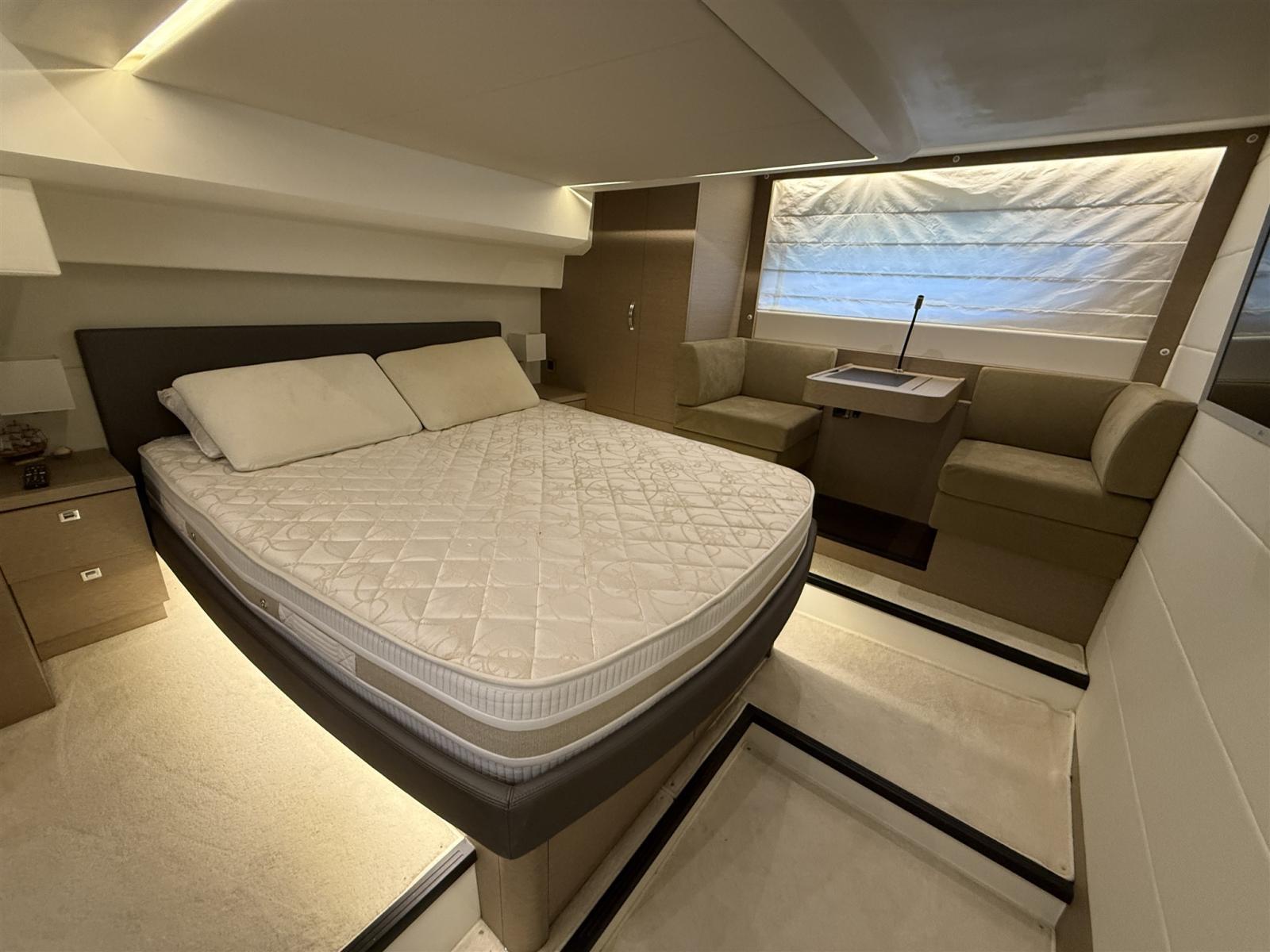 Engine Alarm, Bilge Alarm, Alternator, Water pressure pump, Teak Side Decks, Deck Shower, Twin Steering, Directional Spotlight, Electric Flaps, Fire Extinguishing System, Flaps Indicators, Courtesy Lights, Gangway, Platform, Automatic Bilge Pump, Manual Bilge Pump, Teak deck, Entry door, Teak Cockpit, Shorepower connector, Rollbar, Electric Windlass, swimming ladder, Stabilizers (SEAKEEPER 6), cockpit table, guard rails with gates, Horn, Stern Winches.