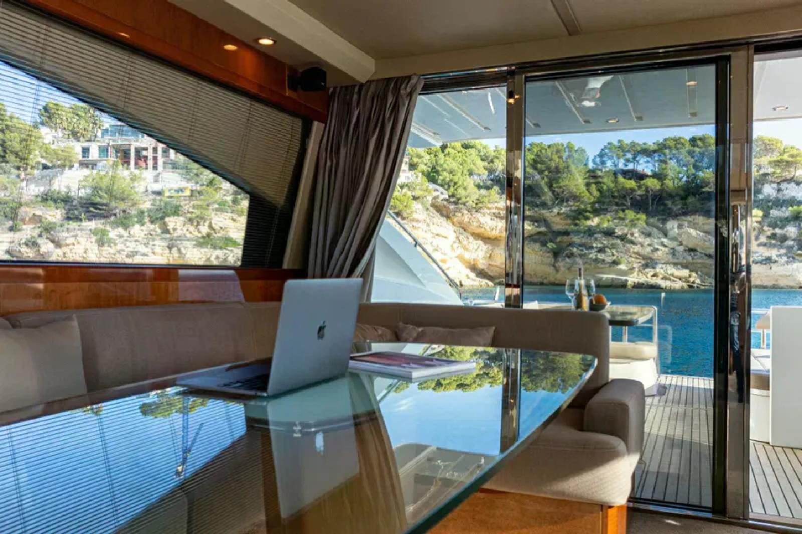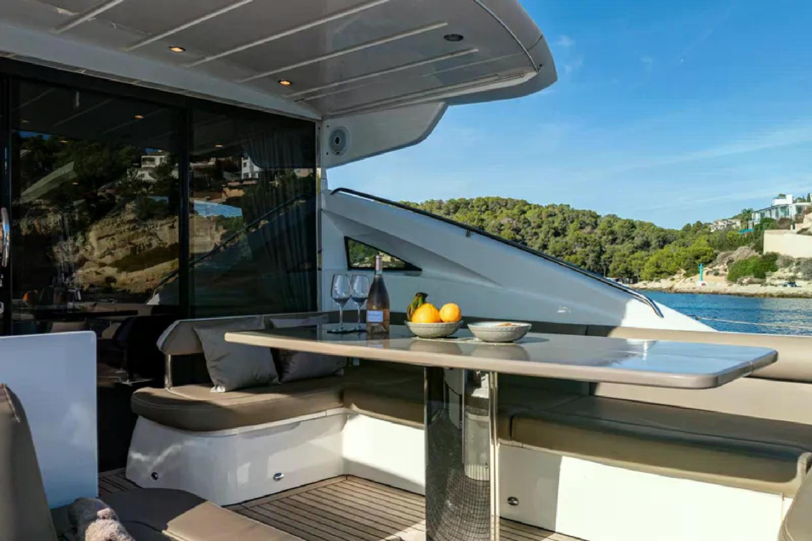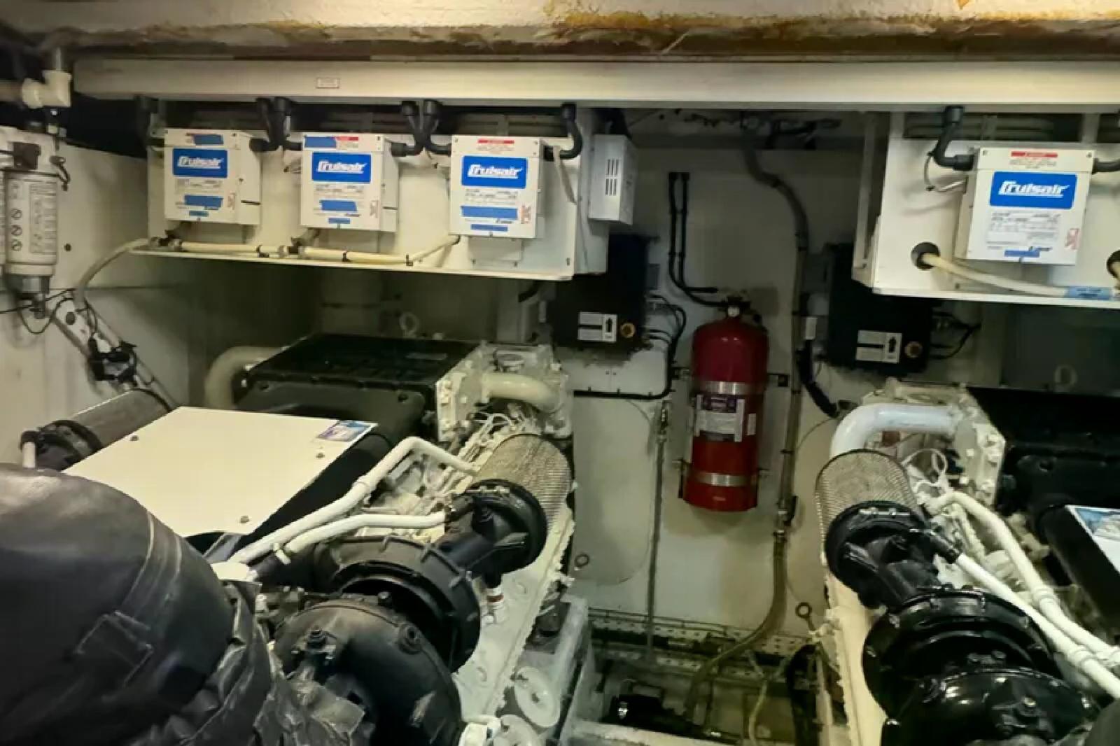 Engine Alarm, Bilge Alarm, Alternator, Water pressure pump, Teak Side Decks, Deck Shower, Directional Spotlight, Electric Flaps, Tender Garage, Hard top, Fire Extinguishing System, Flaps Indicators, Washbasin in the cockpit, Courtesy Lights, Gangway, Platform (ELETTROIDRAULICA), Automatic Bilge Pump, Teak deck, Entry door, Side door, Teak Cockpit, Shorepower connector, Water harbor connector system, Electric Windlass, swimming ladder, cockpit table, guard rails with gates, Horn, Stern Winches.