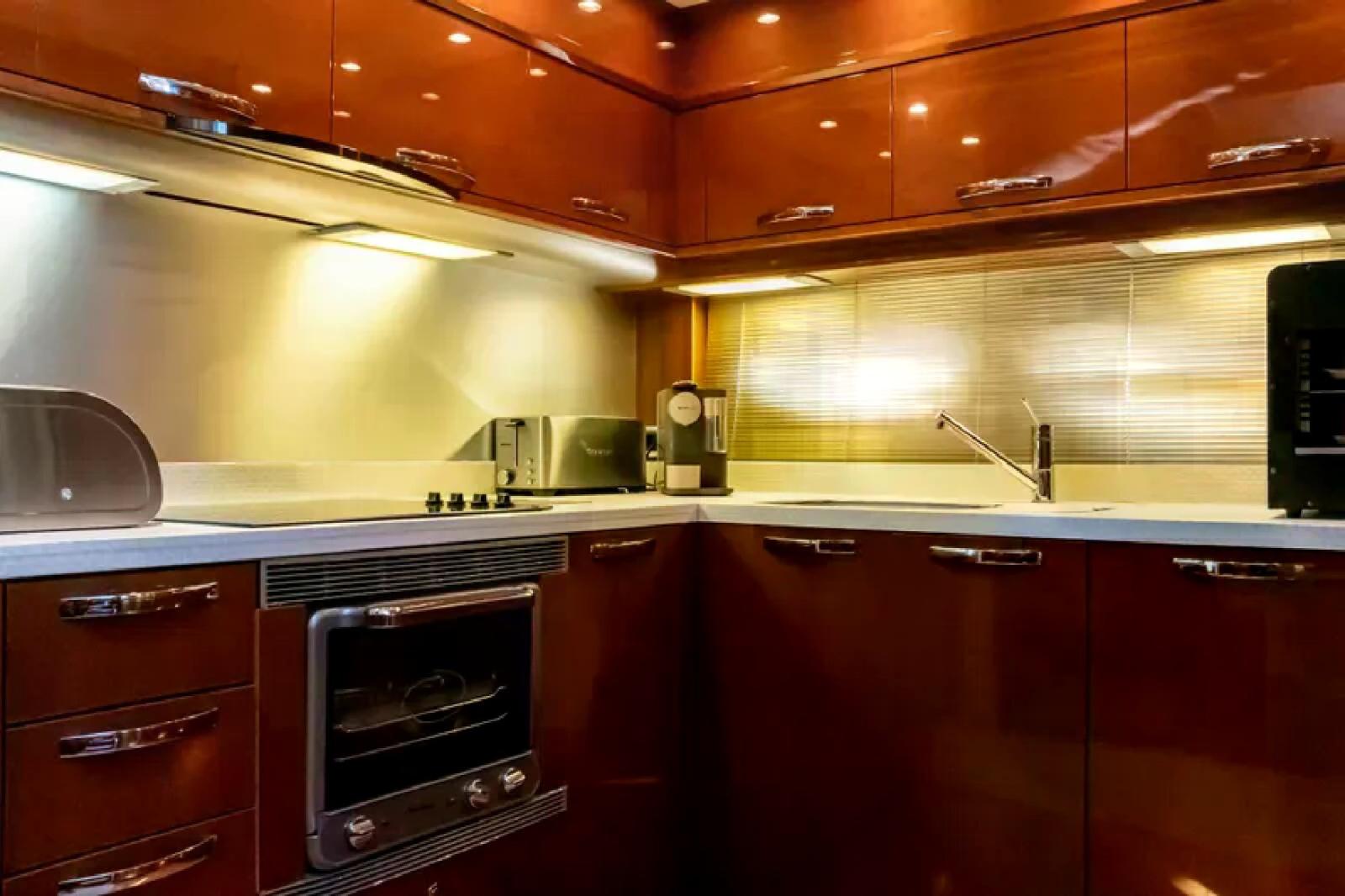 Galley, Deck Refrigerator, ICE Maker, Washer dryer, Dishwasher, Ceramic hot plate.