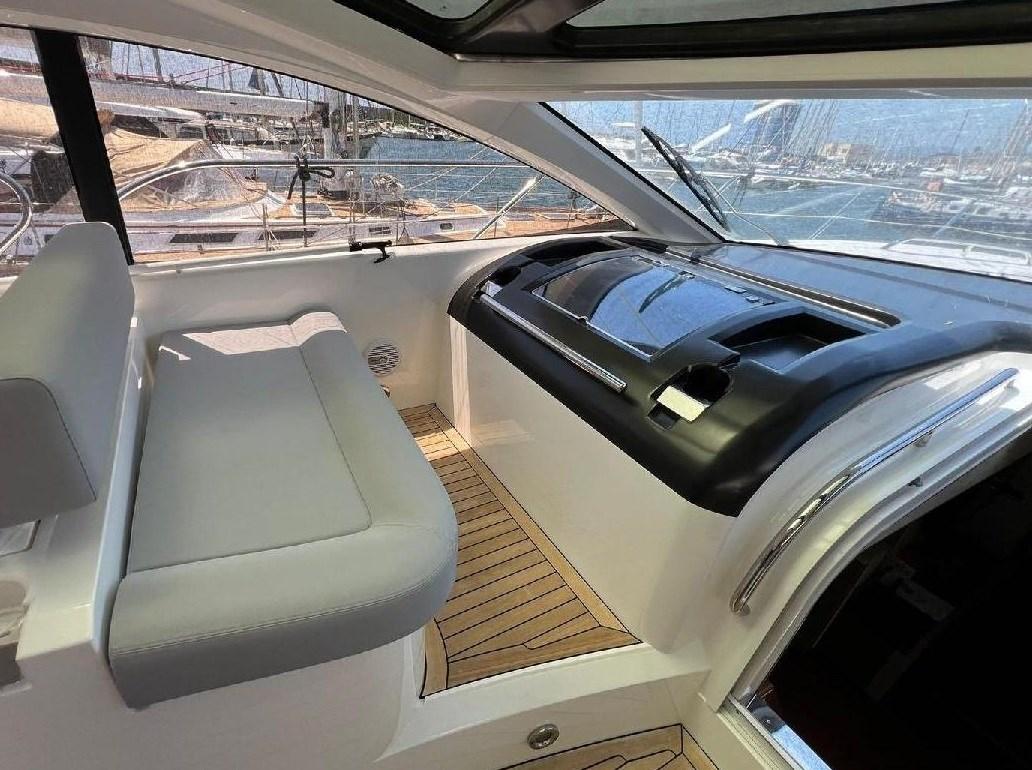 Engine Alarm, Bilge Alarm, Alternator, Water pressure pump, Shore power cable, Deck Shower, Electric Flaps, Tender Garage, Hard top, Fire Extinguishing System, Flaps Indicators, Washbasin in the cockpit, Courtesy Lights, Gangway, Platform (IDRAULICA), Automatic Bilge Pump, Manual Bilge Pump, Teak Cockpit, Shorepower connector, Rollbar, Electric Windlass, swimming ladder, cockpit table, Living Room Foldable Table, guard rails with gates, Horn.