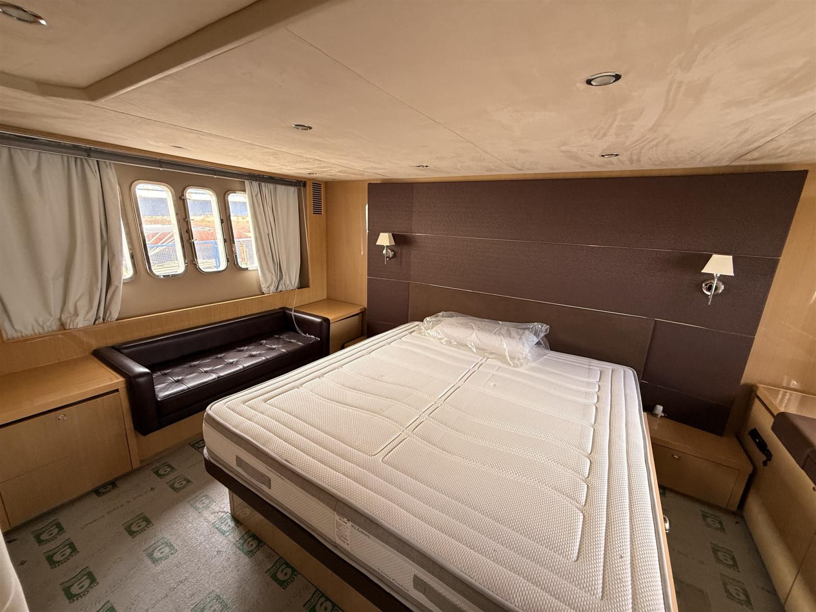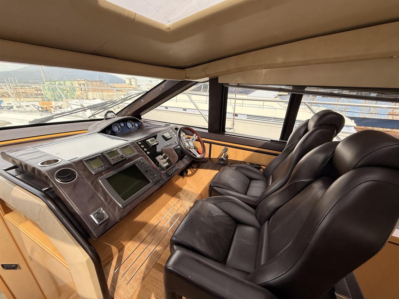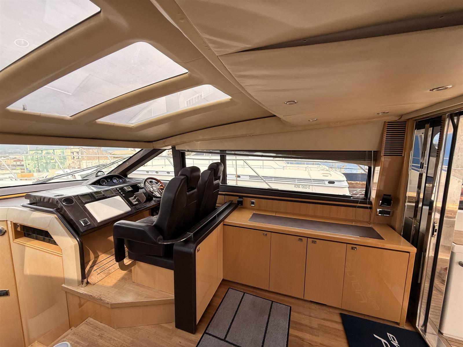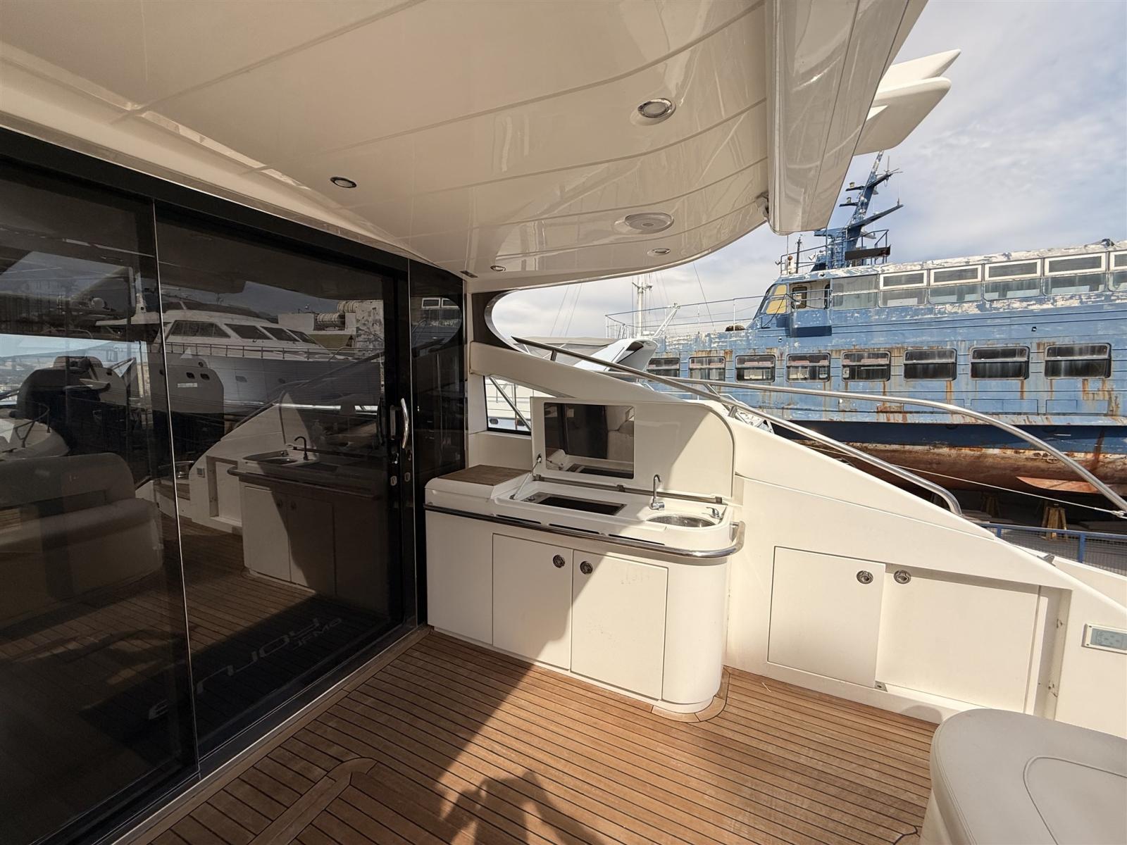 Alternator, Water pressure pump, Shore power cable, Guard rail, Deck Shower, Electric Flaps, Hydraulic Flaps, Tender Garage, Hard top, Washbasin in the cockpit, Courtesy Lights, Gangway, Platform, Automatic Bilge Pump, Shorepower connector, Electric Windlass, swimming ladder, cockpit table, Stern Winches.