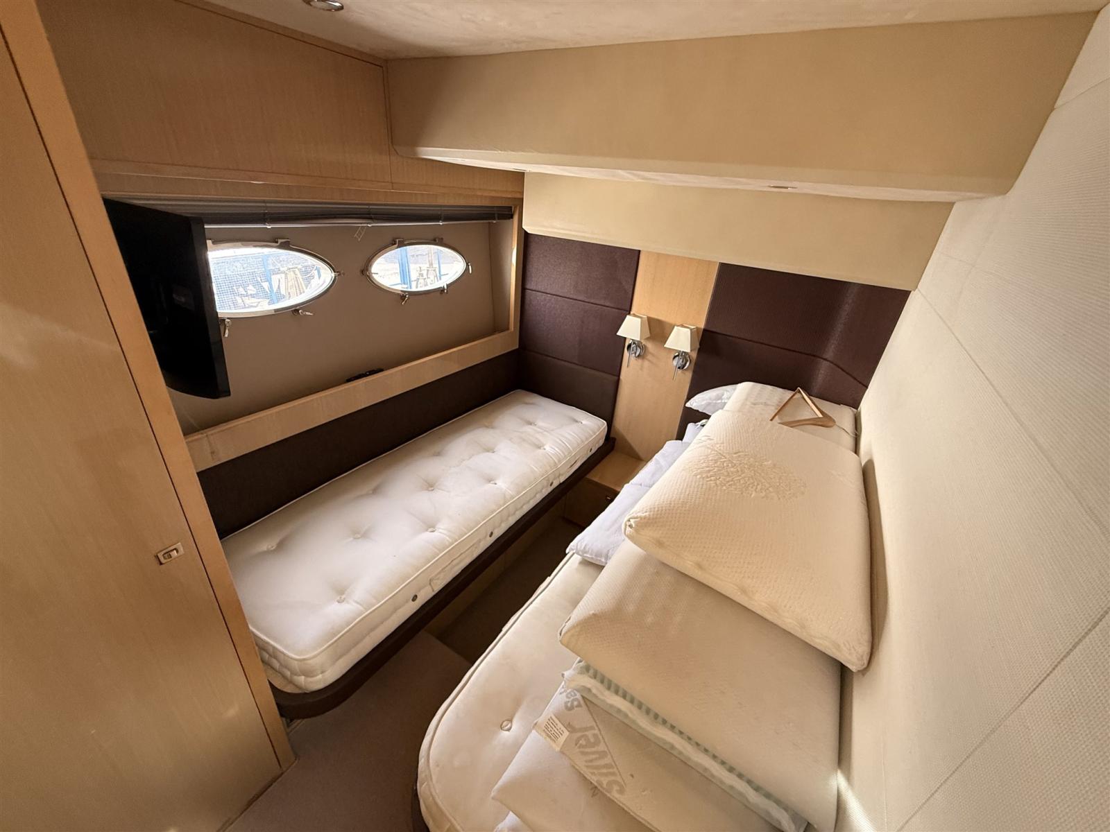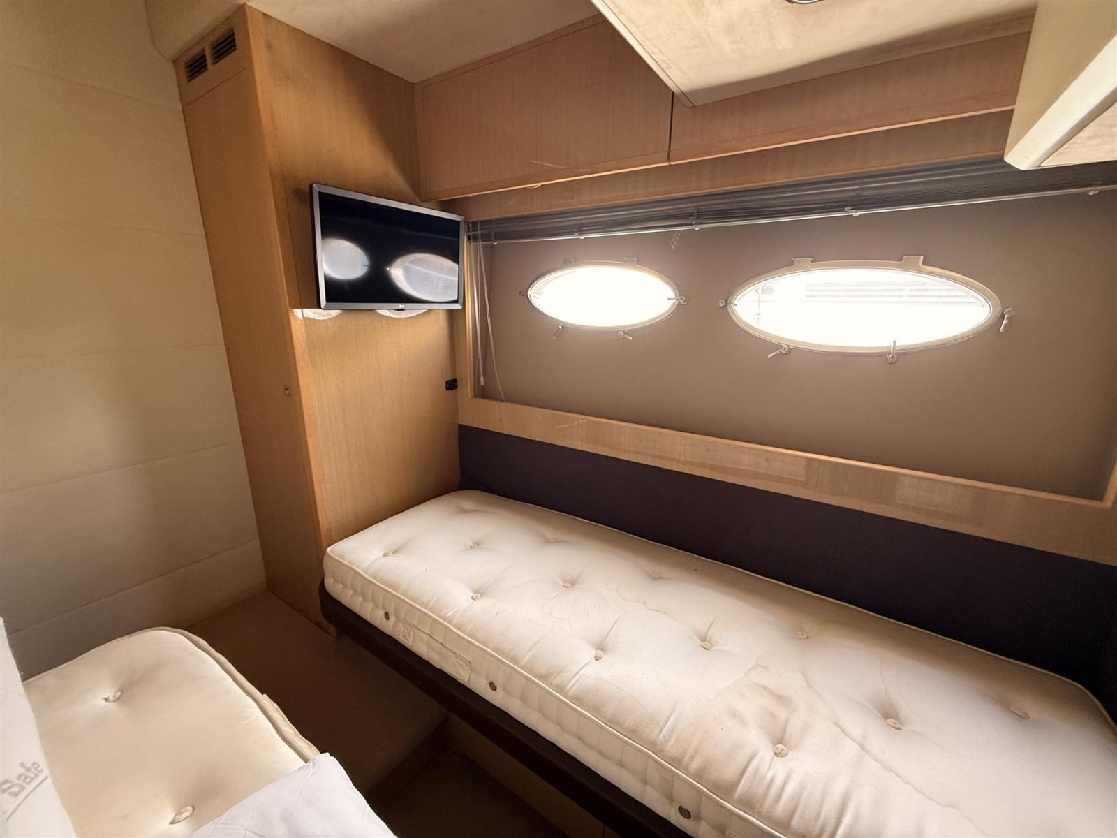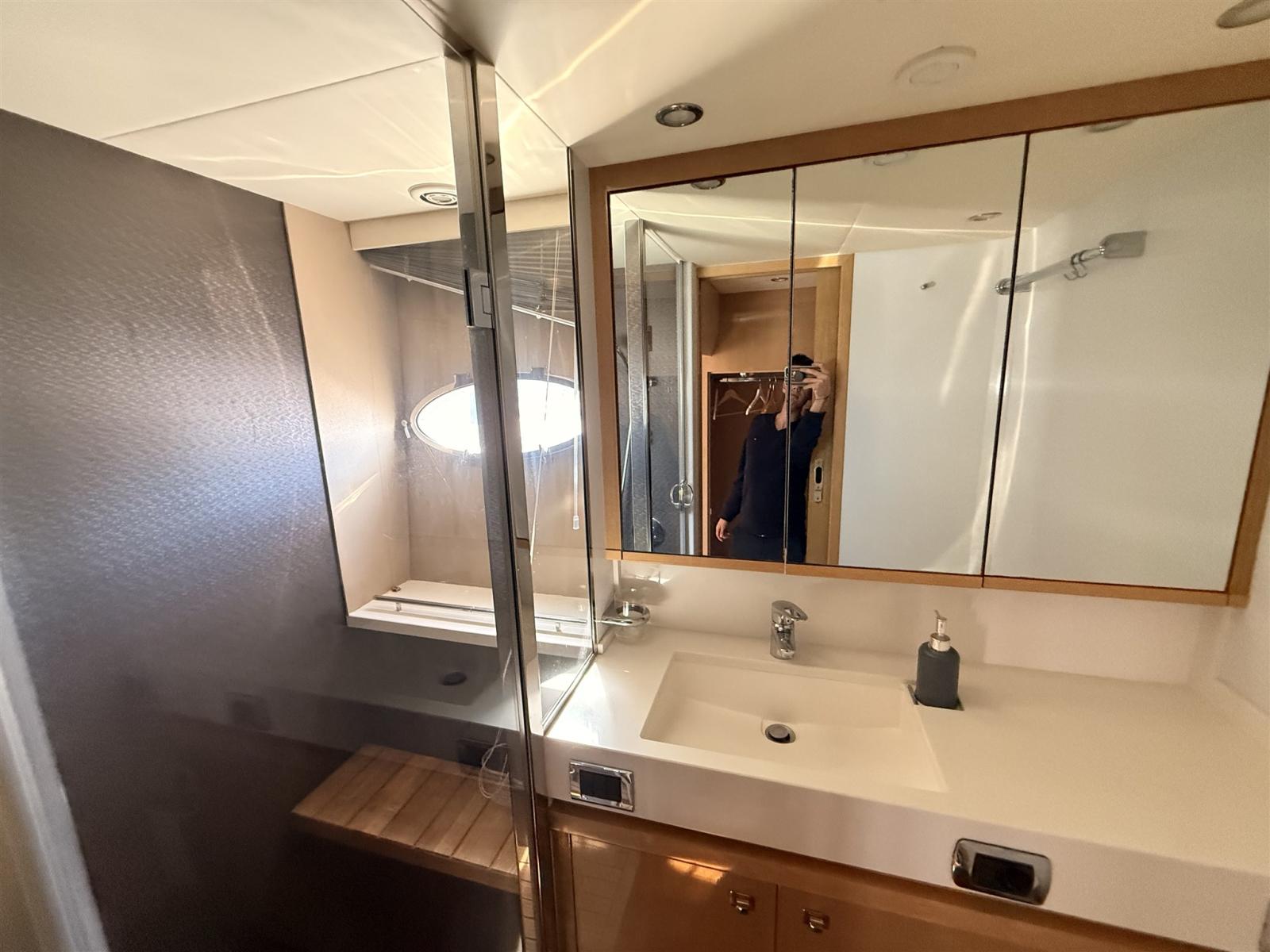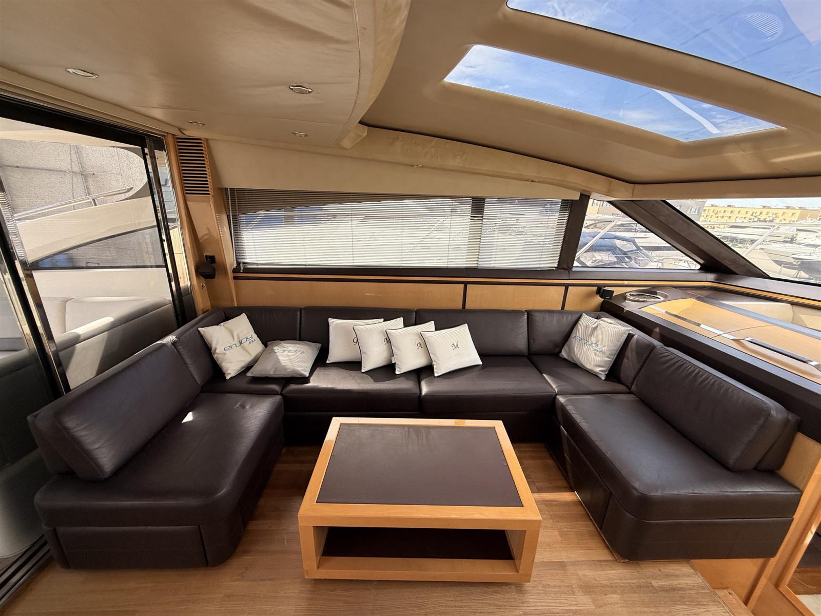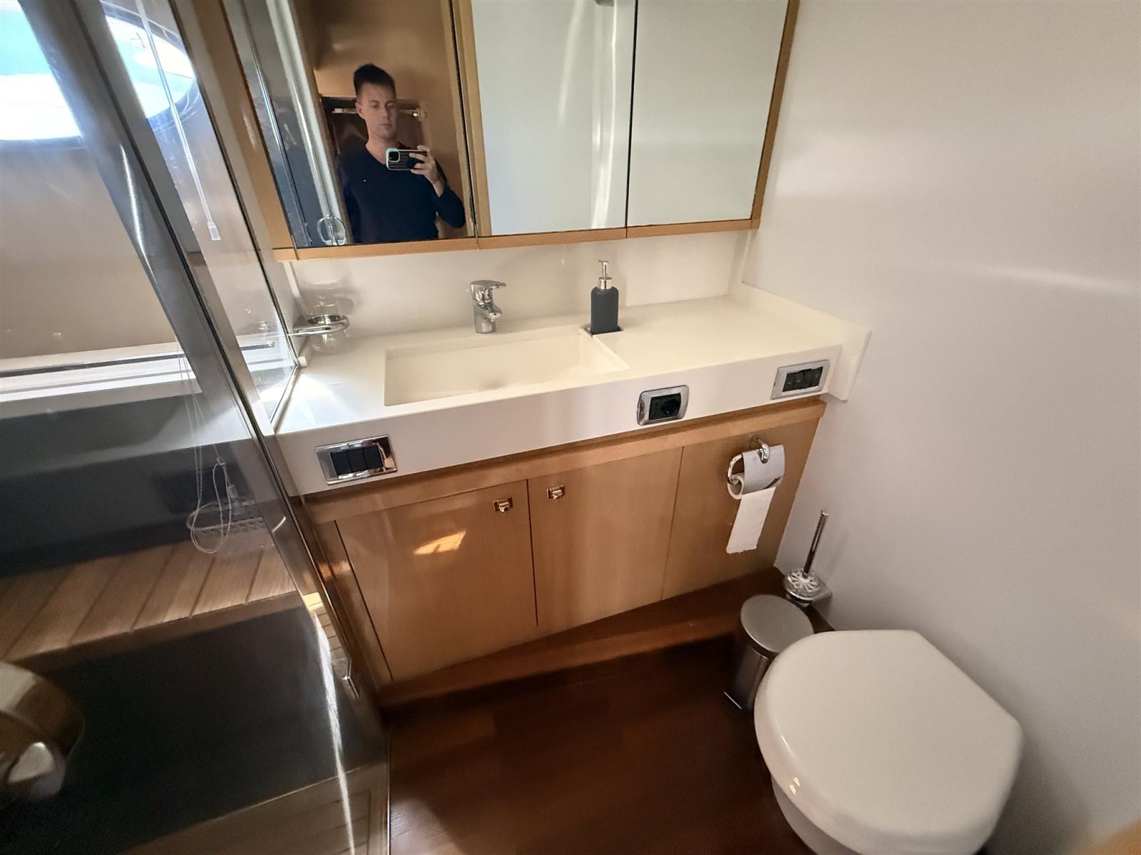 Alternator, Water pressure pump, Shore power cable, Guard rail, Deck Shower, Electric Flaps, Hydraulic Flaps, Tender Garage, Hard top, Washbasin in the cockpit, Courtesy Lights, Gangway, Platform, Automatic Bilge Pump, Shorepower connector, Electric Windlass, swimming ladder, cockpit table, Stern Winches.
