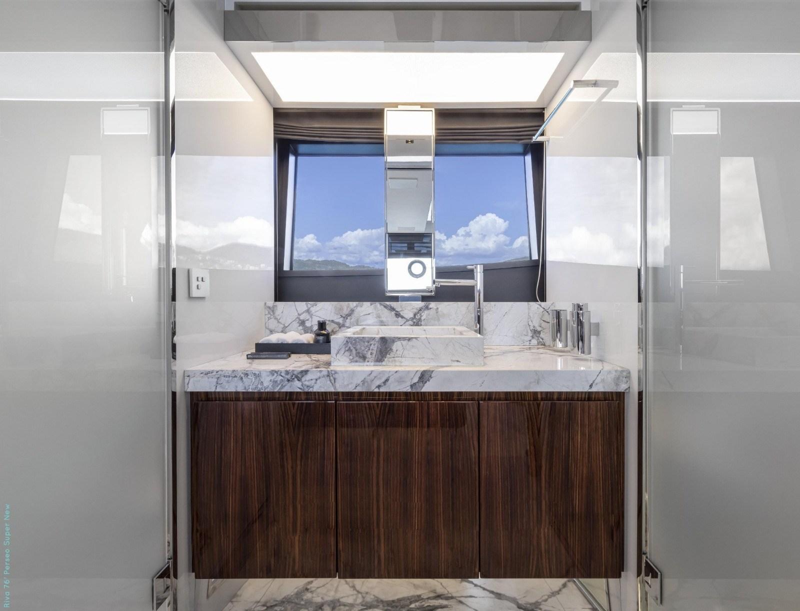 The 76 Perseo combines sportiness and refinement: the sleek exterior lines, the generous glass surfaces, the skilful use of noble materials (wood, steel, glass) and finishes with attention to detail bring out Riva's "made in Italy" DNA, moreover the outdoor spaces, deck, flybridge, cockpit and sunbathing area, offer ideal environments for relaxation, aperitifs or convivial moments, making the boat perfect for both comfort cruises and representative excursions.