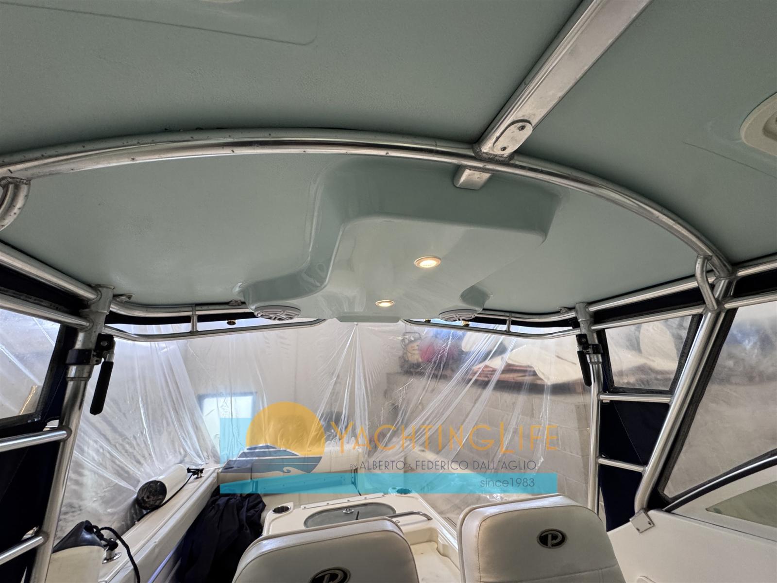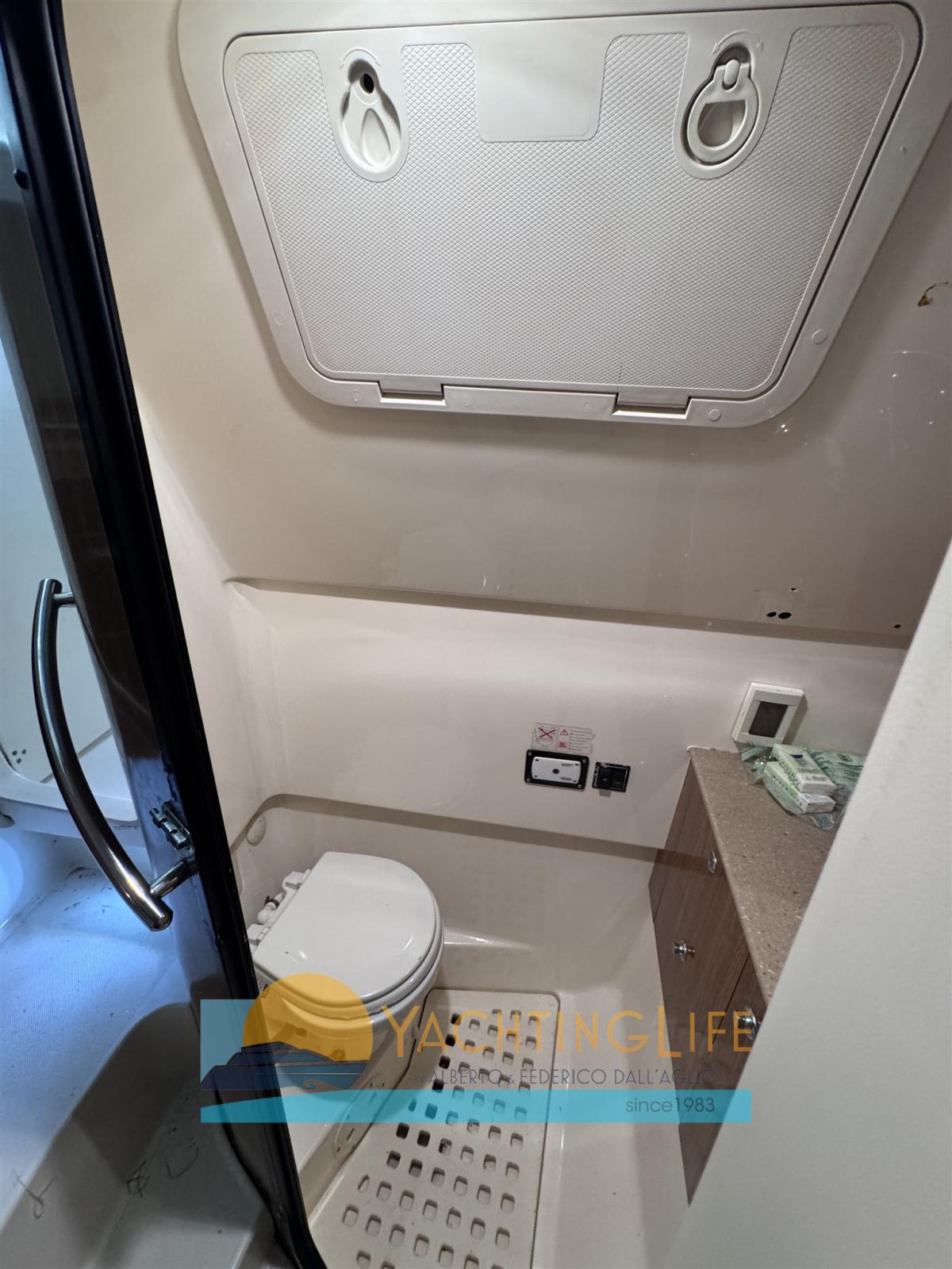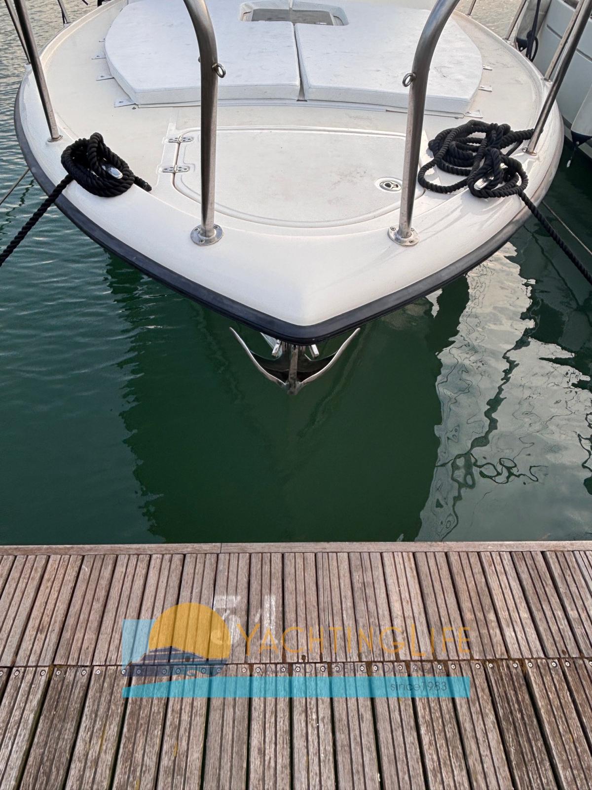 Engine Alarm, Water pressure pump, Special Colour (Celeste), Deck Shower, Headlights fixed on the stem, Hydraulic Flaps, Washbasin in the cockpit, Courtesy Lights, Fenders, Platform, Deck Wash Pump, Entry door, Shorepower connector, Electric Windlass (Lewmar Pro Series 1000 2024), swimming ladder, Horn, T-Top.