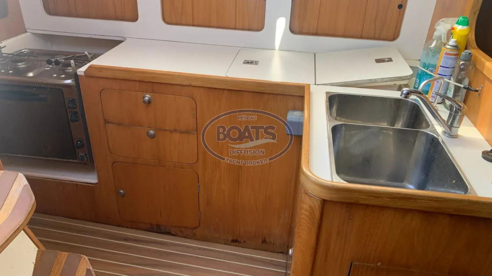 Galley with double sink and pressurised hot and cold water.